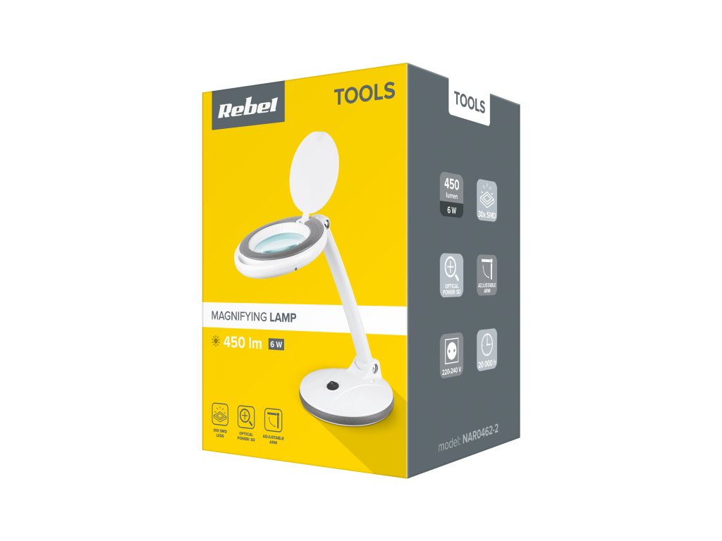 Datorită bazei solide, puteți așeza dispozitivul stabil pe o masă sau pe un blat și, cu ajutorul brațului, să adaptați unghiul de vedere la nevoile dumneavoastră. Lampa LED cu lupă de 5 dioptrii asigură o mărire foarte bună a obiectelor vizualizate. Pentru îngrijirea corectă a lupei de 4", lampa Rebel este echipată cu un capac de protecție pentru lentilă, pentru a preveni acumularea de praf.