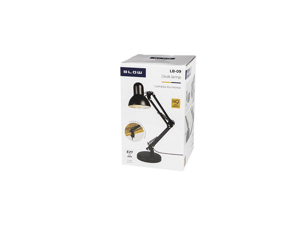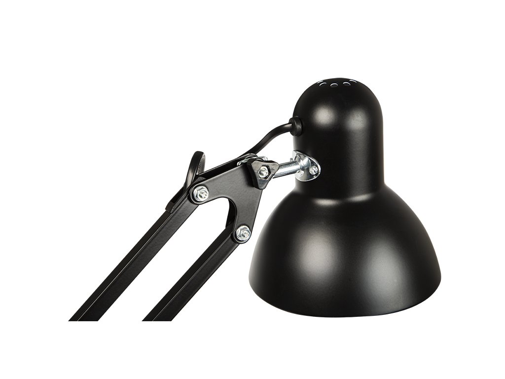 Lampă de birou LB-09 neagră pentru casă, birou sau atelier. Cu ajutorul suportului inclus, o fixăm pe blatul mesei de diverse grosimi și include și o bază clasică care permite amplasarea lămpii oriunde.