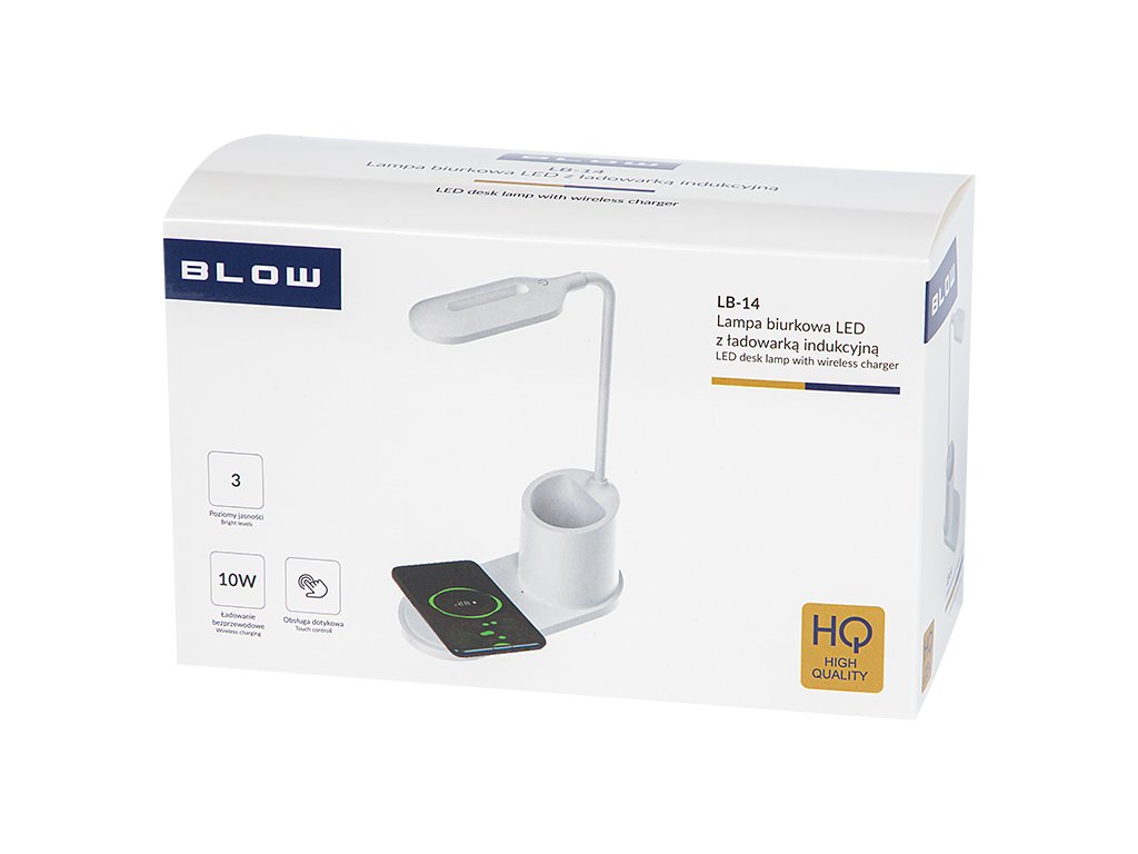 Lampa de masă QC LB-14 cu un încărcător inductiv wireless integrat care folosește cea mai recentă tehnologie Qi de la BLOW vă permite să scăpați de cablurile inutile. Combinarea unei lămpi cu trei trepte cu un încărcător este soluția perfectă care vă va face viața mai ușoară acasă sau la muncă.