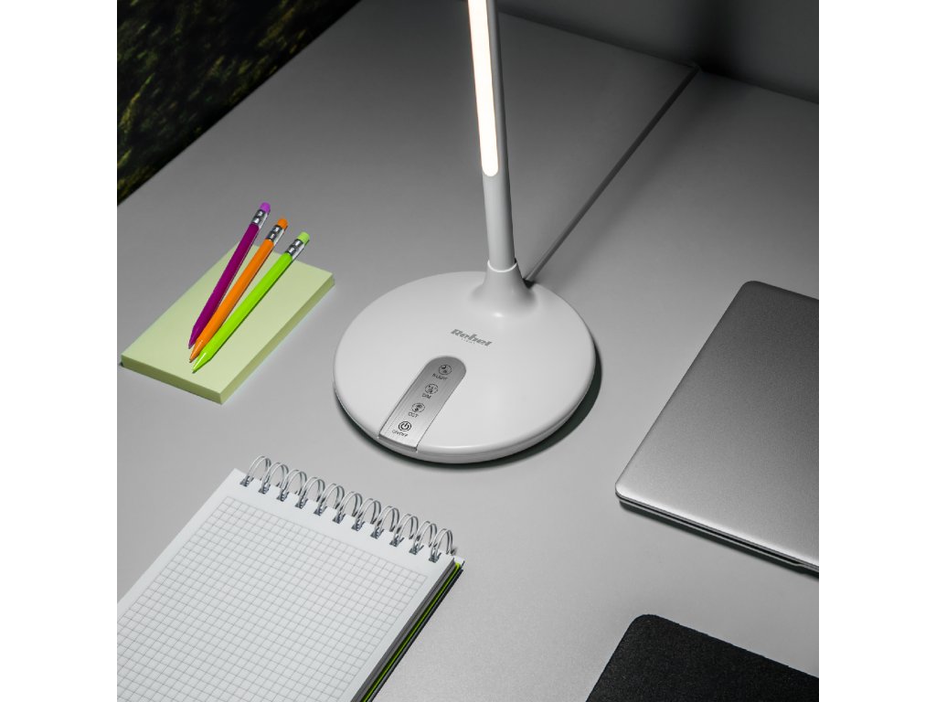 Dacă lucrați frecvent de acasă, o iluminare bună este absolut necesară. Lampa de masă LED de la Rebel îndeplinește perfect această sarcină. Unul dintre principalele sale avantaje este luminozitatea reglabilă a luminii, care vă permite să setați cele mai confortabile condiții. Un mare avantaj este și brațul reglabil, care vă va facilita poziționarea dispozitivului în unghiul corect.