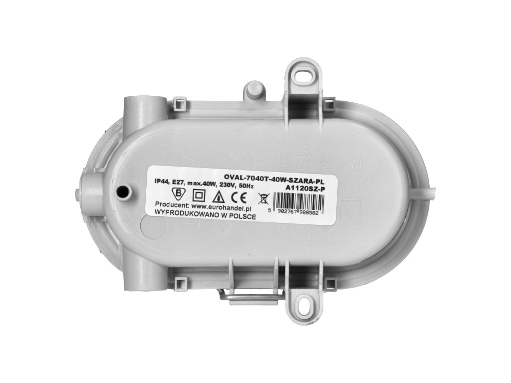 - Grad înalt de protecție: Cu clasificare IP44, lampa exterioară gri E27 40W IP44 IK10 OVAL este rezistentă la ploaie și particule mici de murdărie. Clasa IK10 asigură o rezistență înaltă la șocuri și vandalism, ceea ce o face ideală pentru spațiile publice.