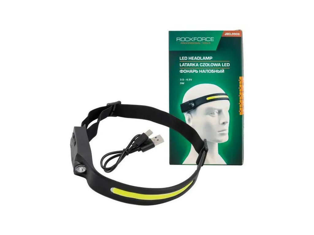 Lampa frontală LED ROCKFORCE cu acumulator 2 în 1, cu senzor de mișcare și USB-C