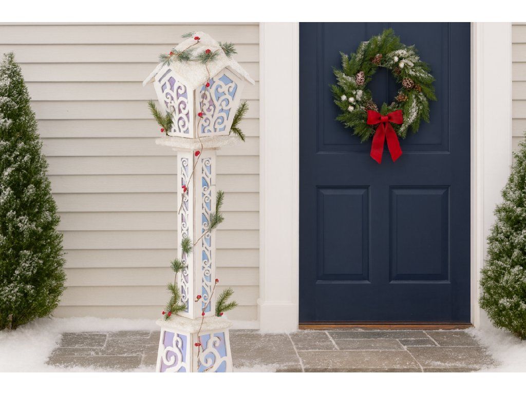 Adăugați magie a Crăciunului în casa dumneavoastră datorită acestei lampa LED excepționale. Culoarea sa alb elegant, detaliile decorative și lumina delicată creează o atmosferă unică plină de căldură și farmec. Se potrivește perfect ca decorare la intrarea în casă, în living sau pe terasă, adăugând fiecărui interior puțin din magia Crăciunului.