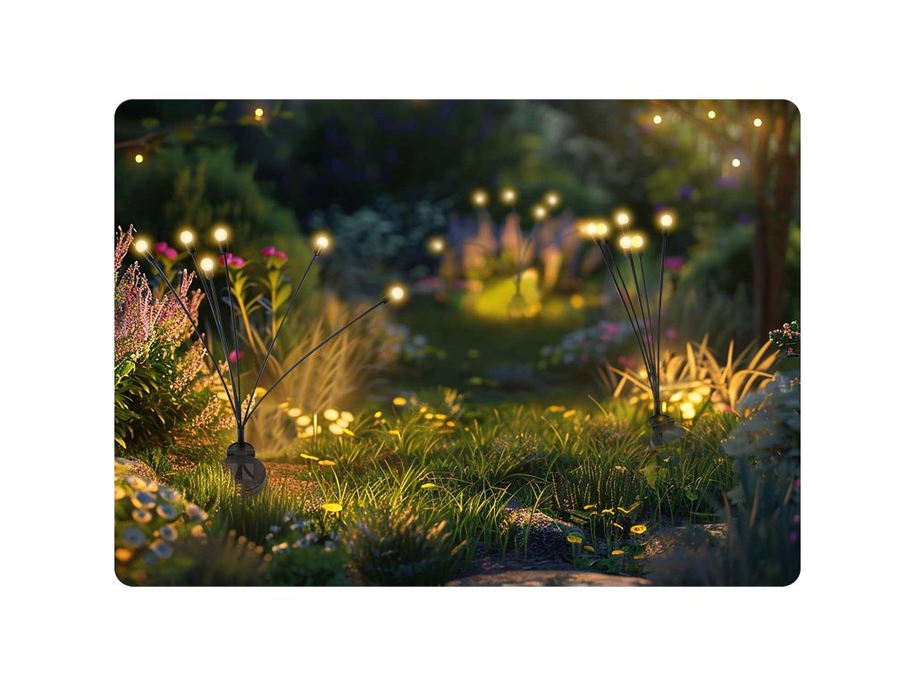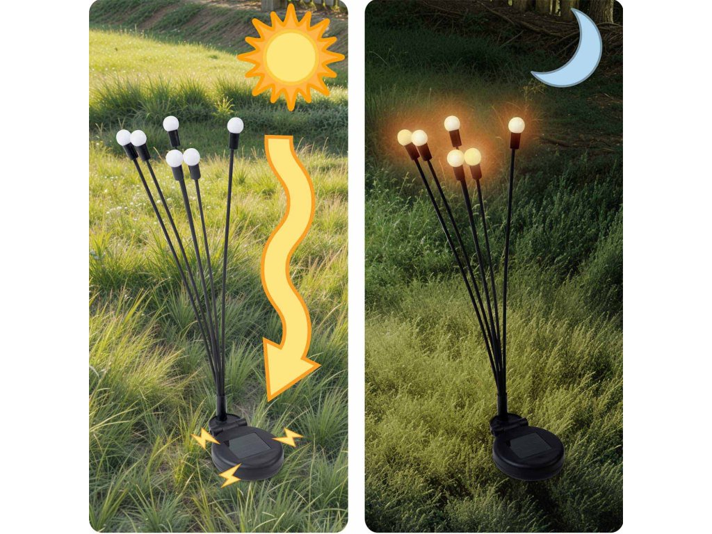 - Noaptea lămpile se aprind automat și încep să lumineze cu 6 becuri sferice.