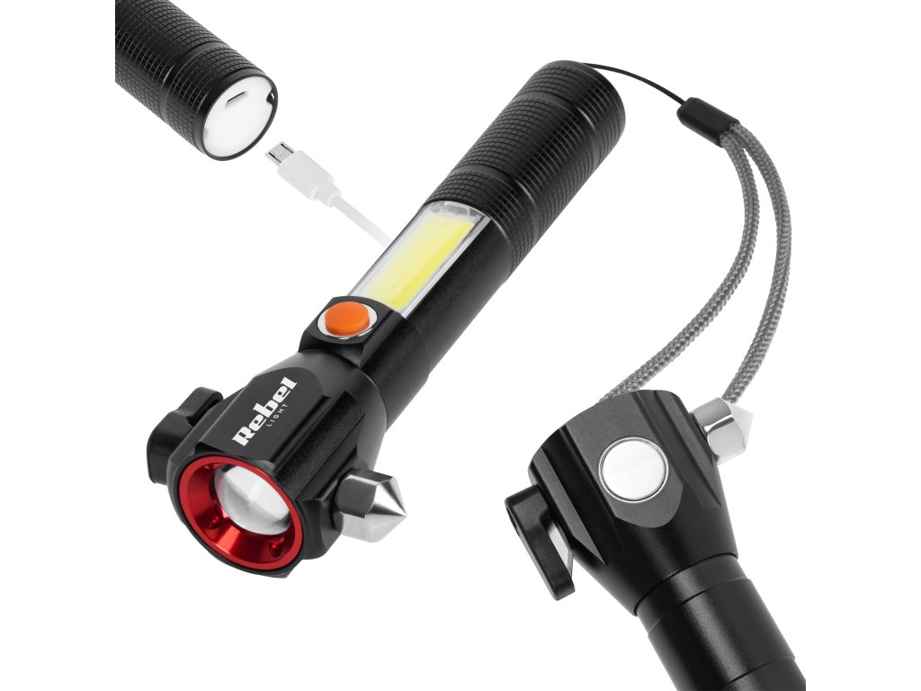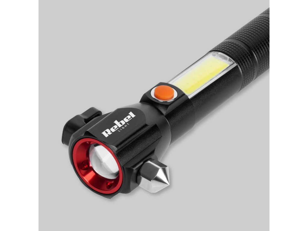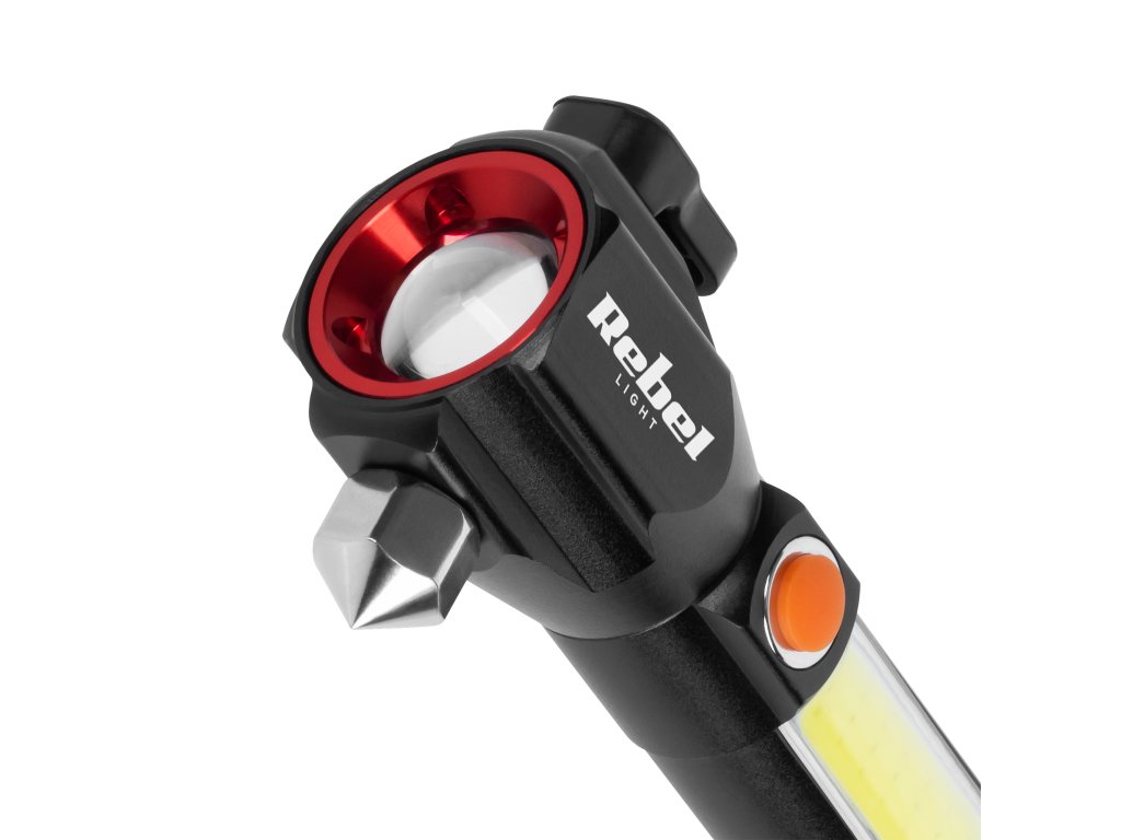 Unul dintre cele mai importante elemente ale lanternei Rebel URZ0941 este ciocanul de sticlă încorporat. Datorită acestuia, în caz de defecțiune sau accident, veți putea sparge ușor geamul și ieși din vehicul. În plus, produsul are un cuțit, ceea ce este deosebit de important în situații de urgență. Echipamentul este completat de un magnet care permite atașarea ușoară a lanternei pe suprafețe metalice.