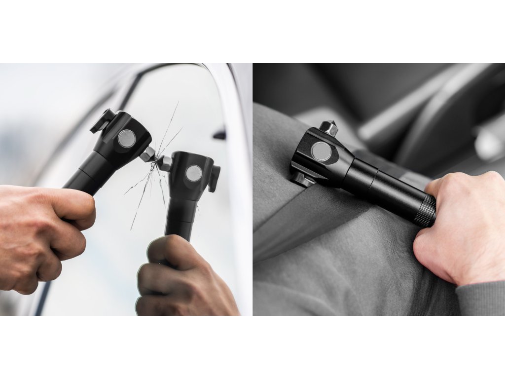 Ciocan de sticlă încorporat, cutter pentru centuri de siguranță, magnet