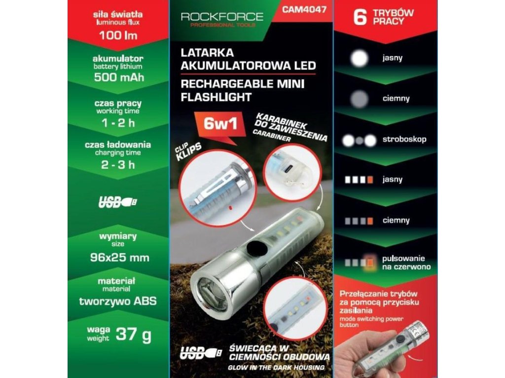 - Versatilitate: Lanterna 6v1 oferă diferite moduri de iluminare, inclusiv lumină puternică, stroboscop și mod SOS, ceea ce o face un instrument ideal în situații de urgență.