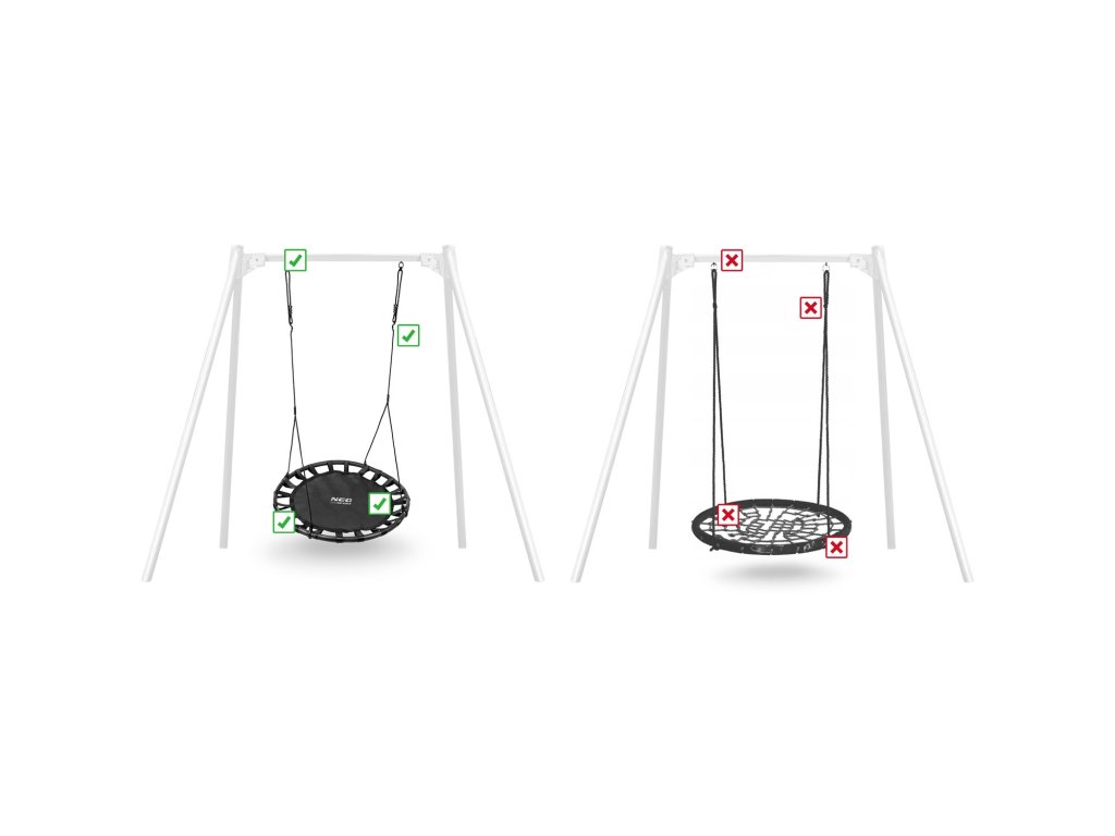 Leagănul pe un cadru de oțel acoperit cu spumă de protecție moale, fabricat din material solid cu multiple cusături și frânghii suspendate groase. Oferă siguranță, stabilitate și durabilitate.