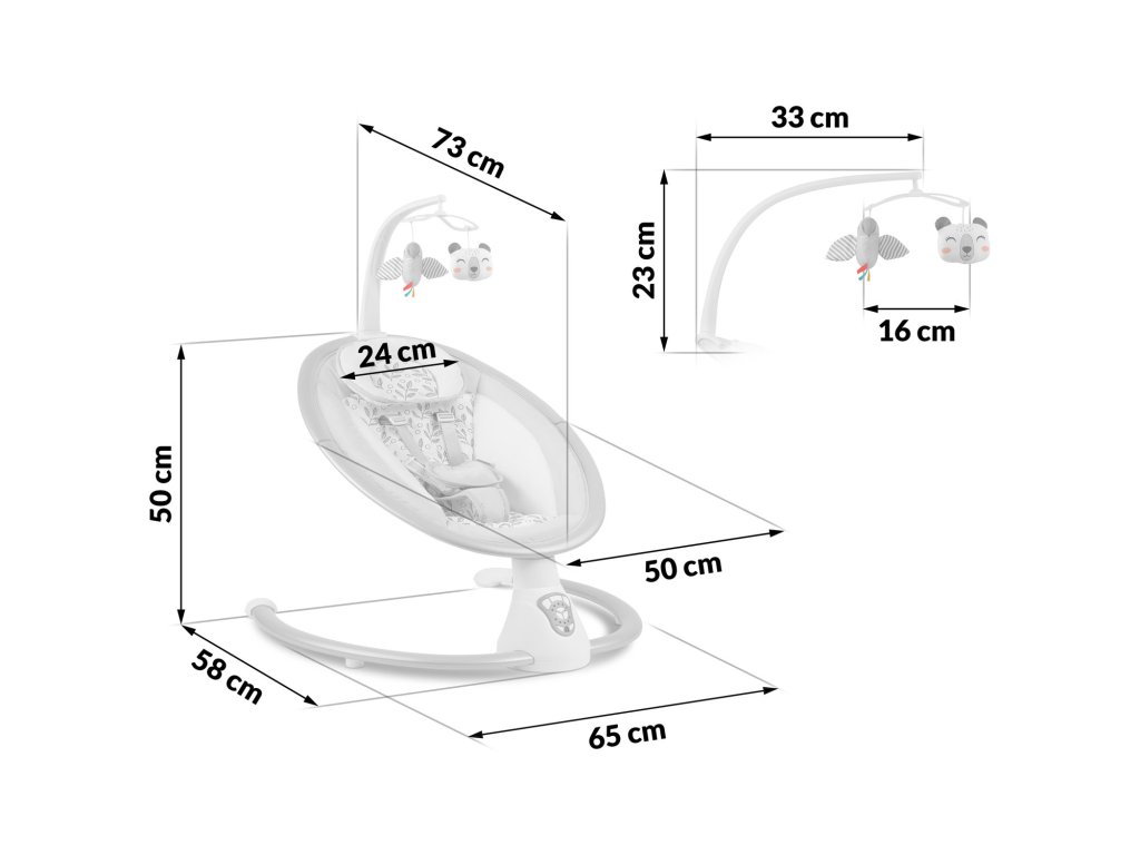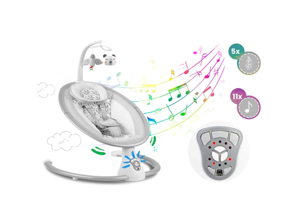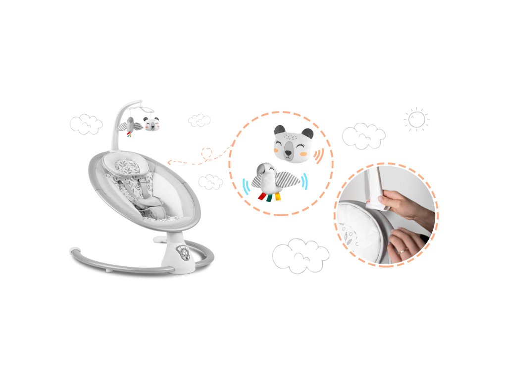Timp de joacă!Leagănul are o bandă detașabilă cu jucării piuitoare și foșnitoare atașate. Acestea vor distra copilul în timp ce dumneavoastră vă relaxați. Aceste jucării unicestimulează vederea și dezvoltă s&iigonima t. Bonusul este că banda poate fi detașată.
