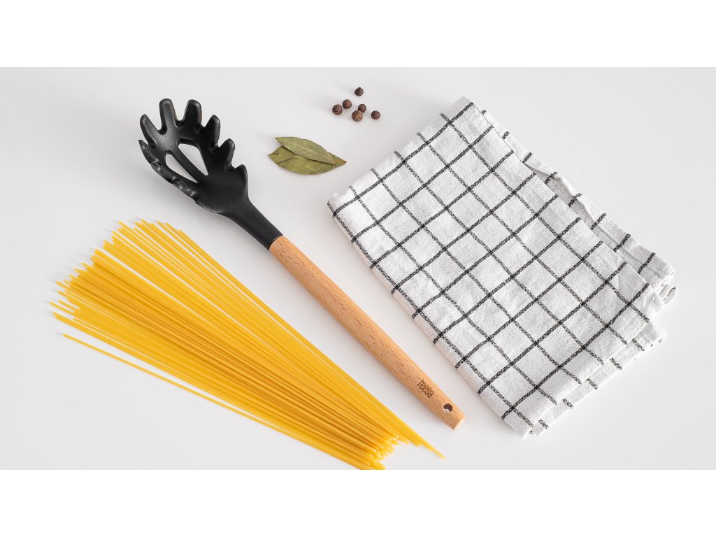 Este un accesoriu indispensabil în bucătăria fiecărui iubitor de paste. Orificiile practice din interior permit măsurarea unei porții de spaghete cu ușurință. Pe de altă parte, marginile profilate, flexibile și ușor ascuțite ale lingurii, combinate cu un mâner confortabil din lemn, facilitează scoaterea pastelor fără ca tăiețeii să alunece, permițând în același timp scurgerea excesului de apă fără a zgâria oala.