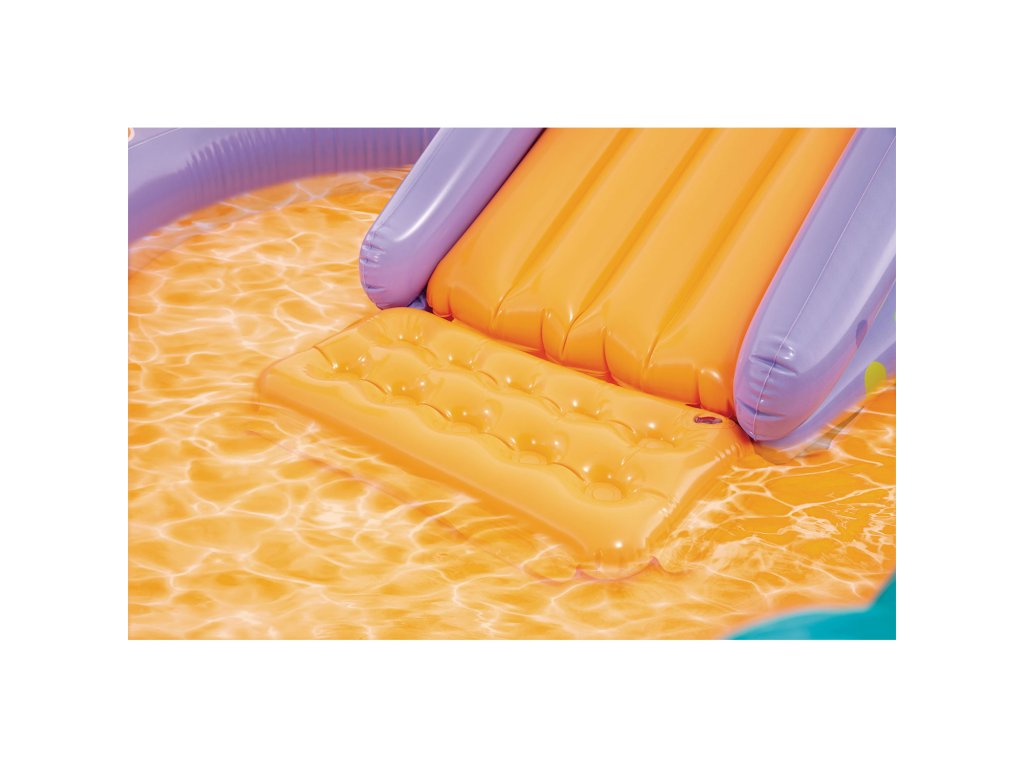 Locul de joacă are un bazin mic, tobogan, două inele gonflabile și o fântână. Cu o asemenea varietate de opțiuni de distracție acvatică, micuții nu mai au de ce să se teamă de zilele lungi de căldură.