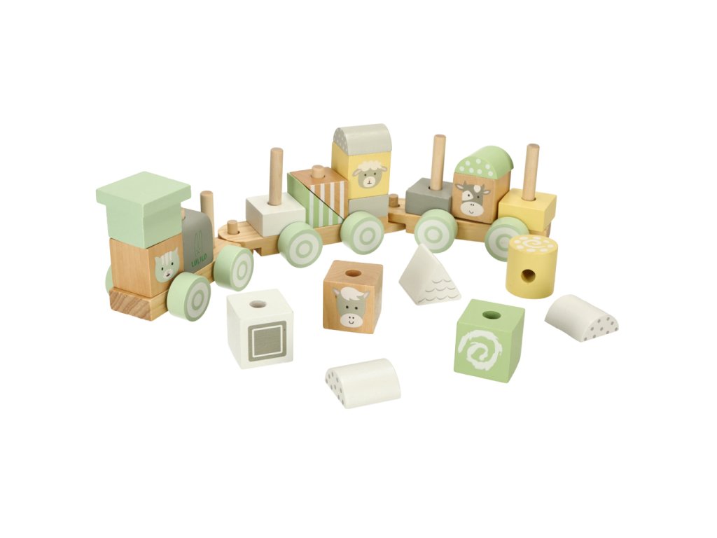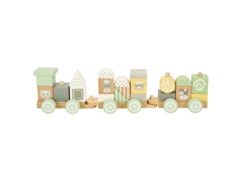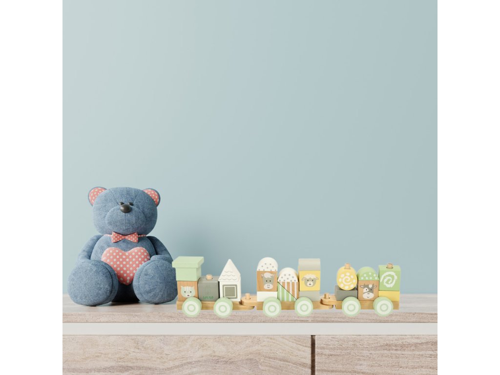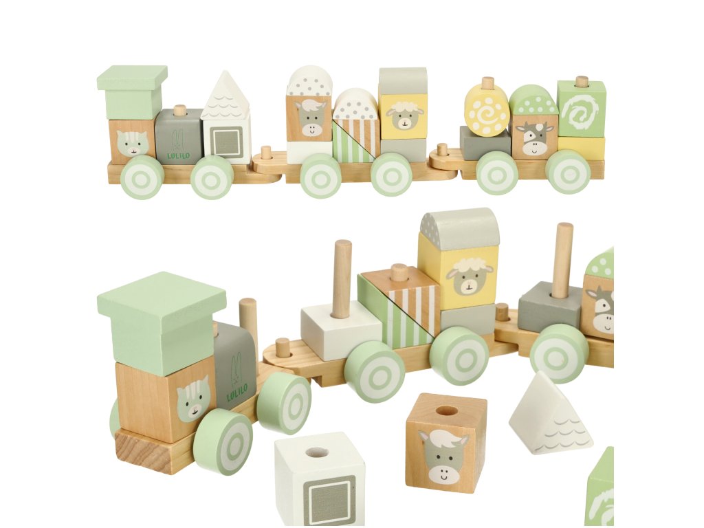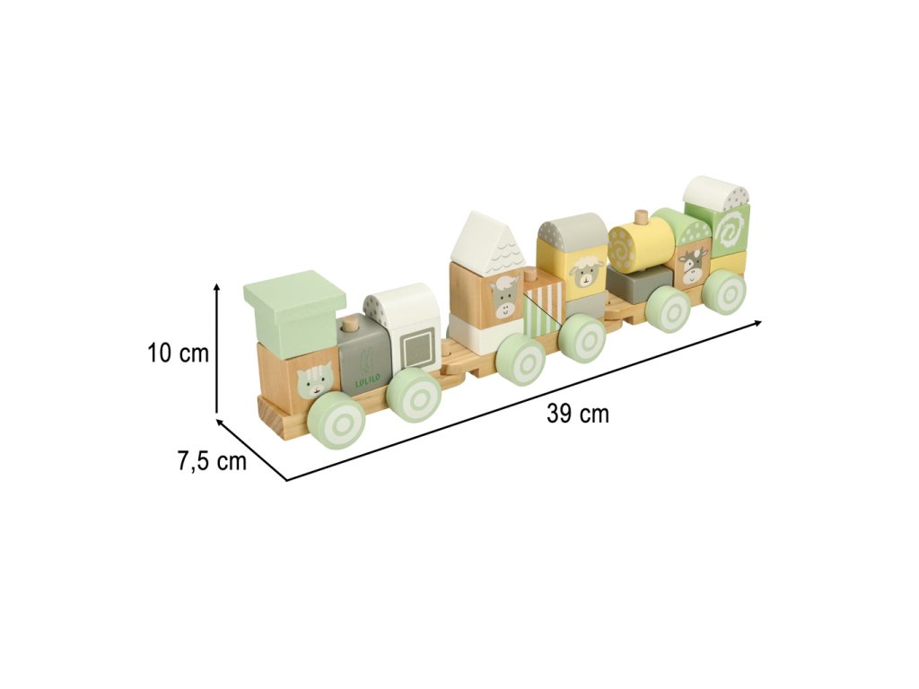 Fiecare bloc de lemn a fost șlefuit cu grijă și vopsit cu vopsele netoxice în culori pastelate delicate. Printre modelele colorate sunt ascunse animale adorabile care transformă fiecare călătorie cu trenul într-o aventură de neuitat. Datorită manoperei de calitate, această jucărie va însoți copilul tău mulți ani.