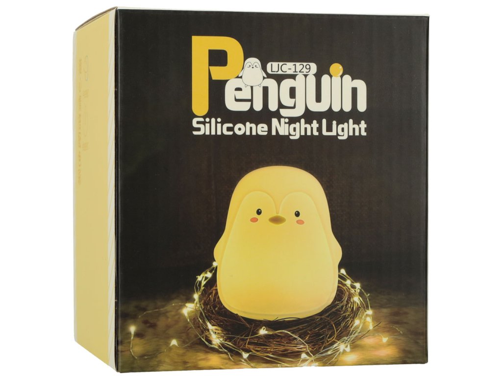 Lumină de noapte LED din silicon pentru copii, pinguin alb