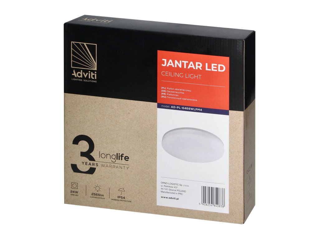 Corpul de iluminat de tavan JANTAR LED 24W are un grad de protecție IP54, care oferă protecție împotriva prafului, umidității și chiar apei. Ca urmare, produsul poate fi utilizat în diverse locații, inclusiv băi și coridoare. Rezistența ridicată la impact (IK08) asigură, de asemenea, siguranța în utilizarea produsului.
