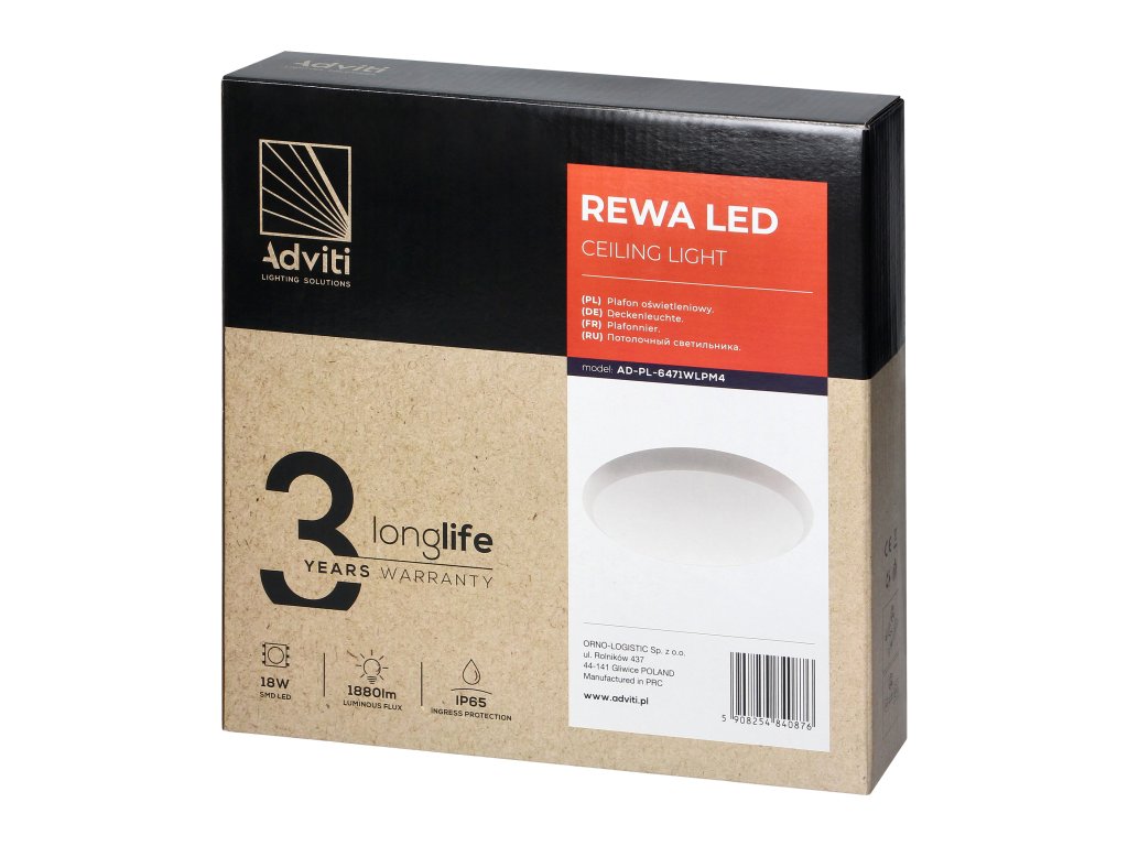 REWA LED 18W este o lampă de perete și de tavan, care se caracterizează nu doar prin funcționalitatea și durabilitatea ridicată, ci și prin aspectul estetic.Dispozitivul are diode LED de 18W care generează un flux luminos clar și uniform de 1880 lm. Această luminozitate este optimă atât pentru utilizarea în interioare casnice, cât și în diverse spații publice, cum ar fi birouri, hoteluri, școli sau magazine.