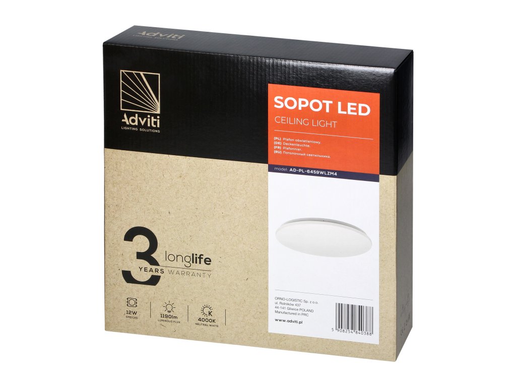 SOPOT este un corp de iluminat LED de tavan de 12W cu o culoare a luminii neutră (4000K) și un flux luminos de 1190lm. Lampa este potrivită și pentru montaj DIY.