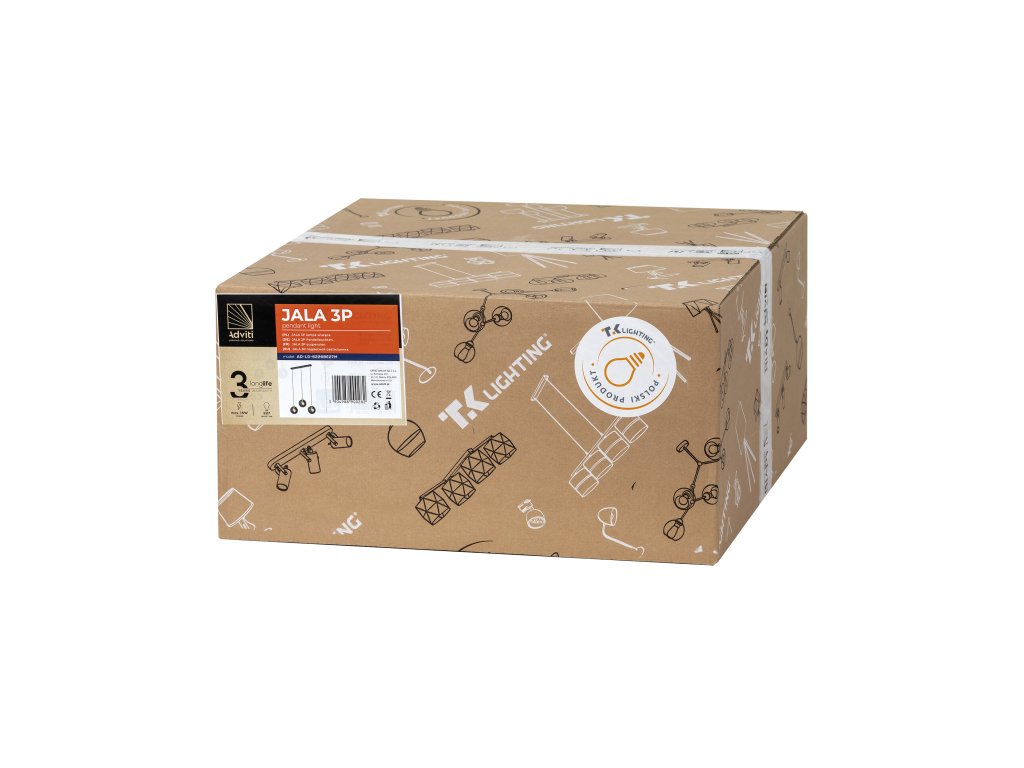 Candelabrul suspendat JALA este proiectat în stil modern. Abajurul rotund din metal, prin designul său, amintește de ochiul lui Cyclop, ceea ce îi conferă un aspect interesant și unic. Lampa este destinată pentru o sursă de lumină cu soclu E27, sursa de lumină nu este inclusă. Lampa este disponibilă în culoarea neagră. Familia include și o versiune cu una și șase surse de lumină.