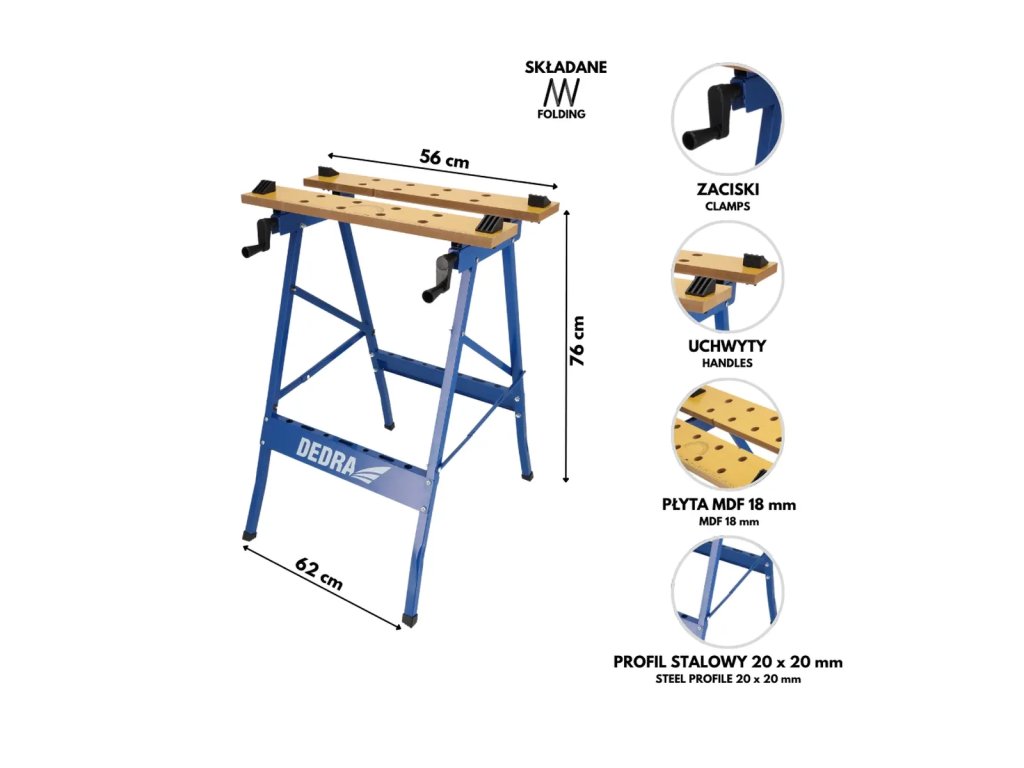 - Material: profil din oțel 20 x 20 mm, blat MDF de 18 mm