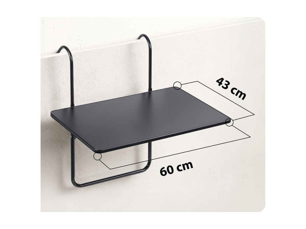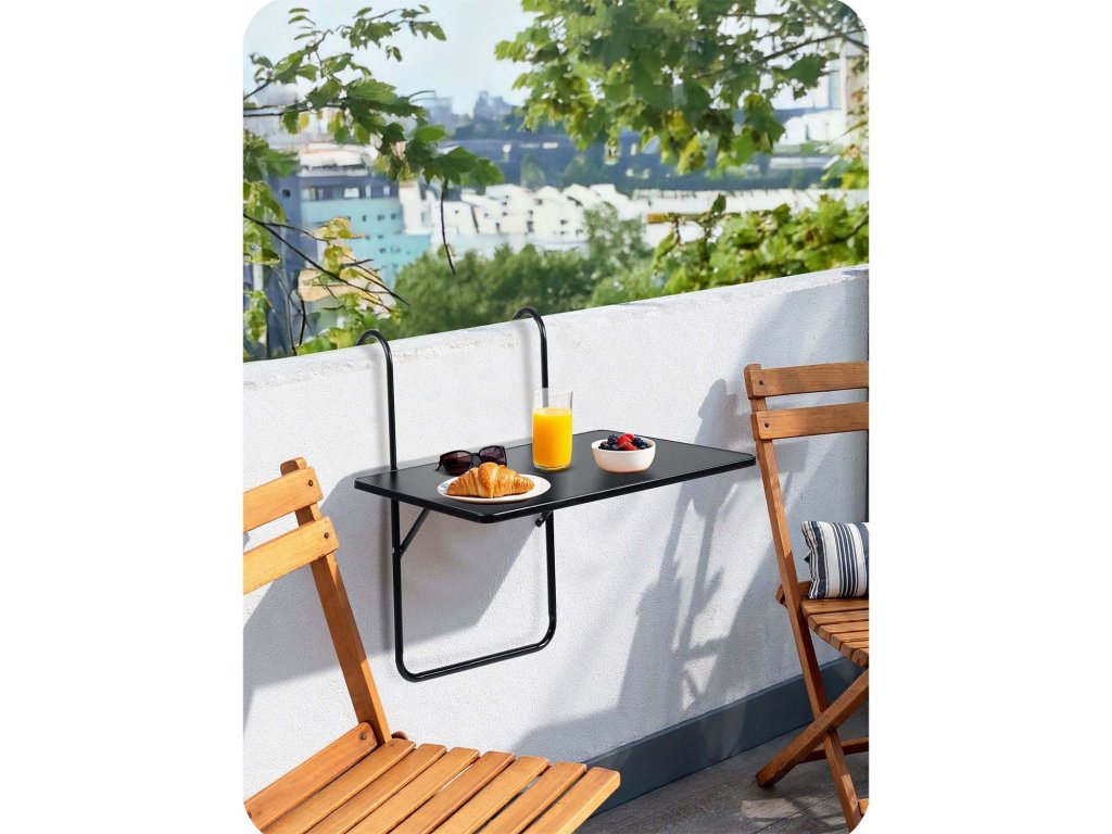 Masă de balcon rezistentă 60x43cm pliabilă Sofotel SO-982 neagră