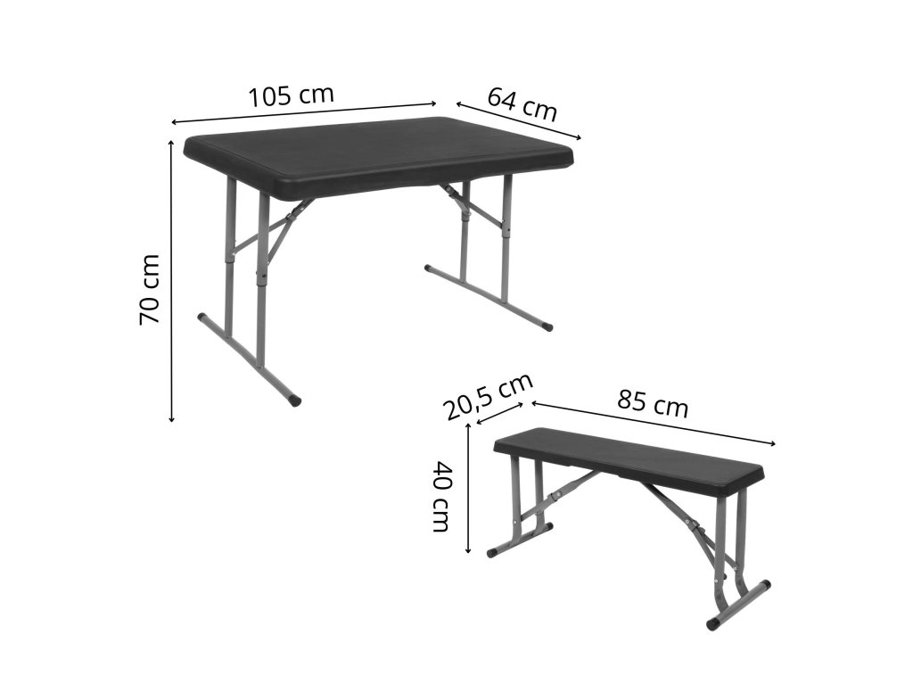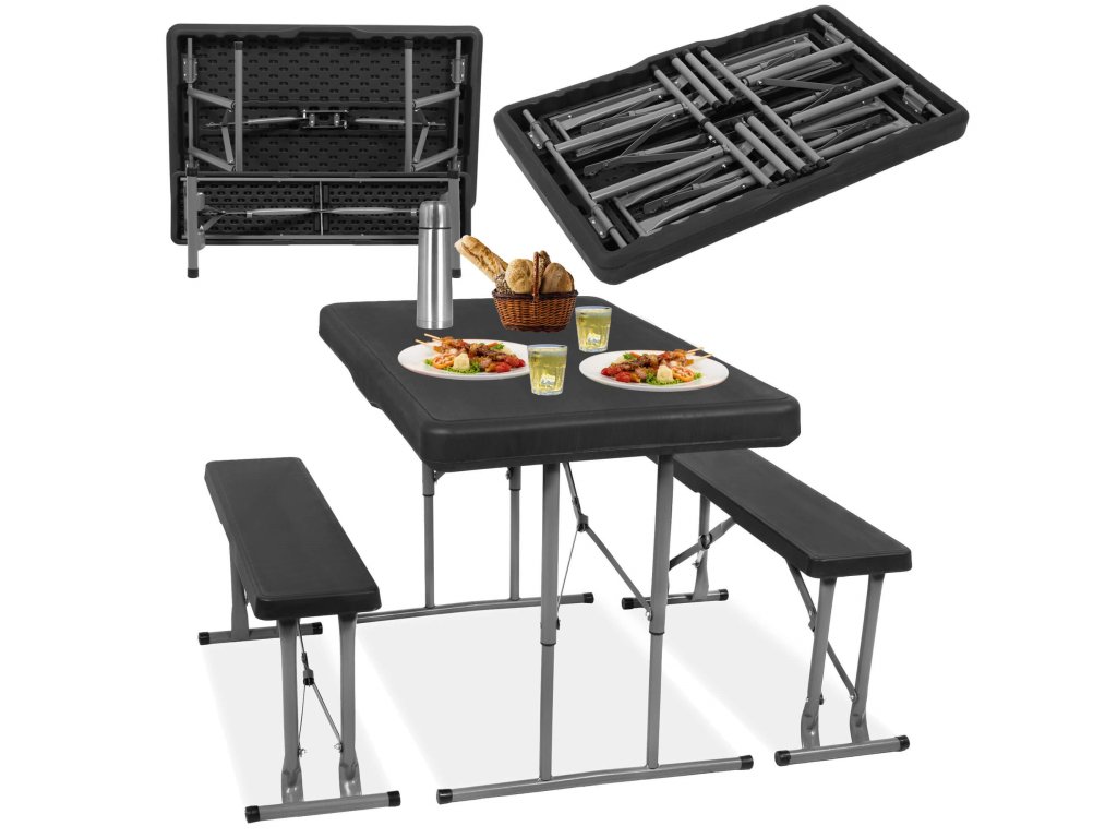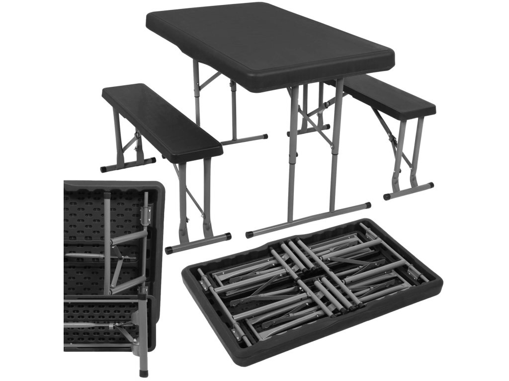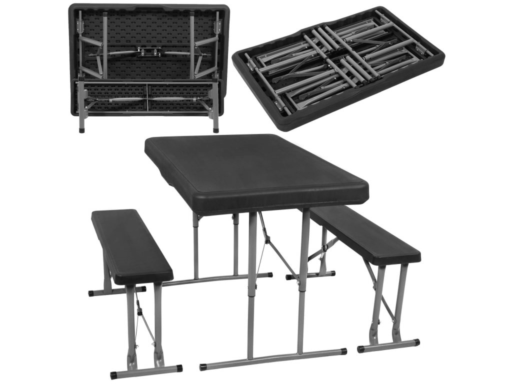 - Băncile pliate sunt complet ascunse în interiorul mesei pliate, astfel încât dimensiunile setului pliat sunt aceleași ca dimensiunile mesei pliate