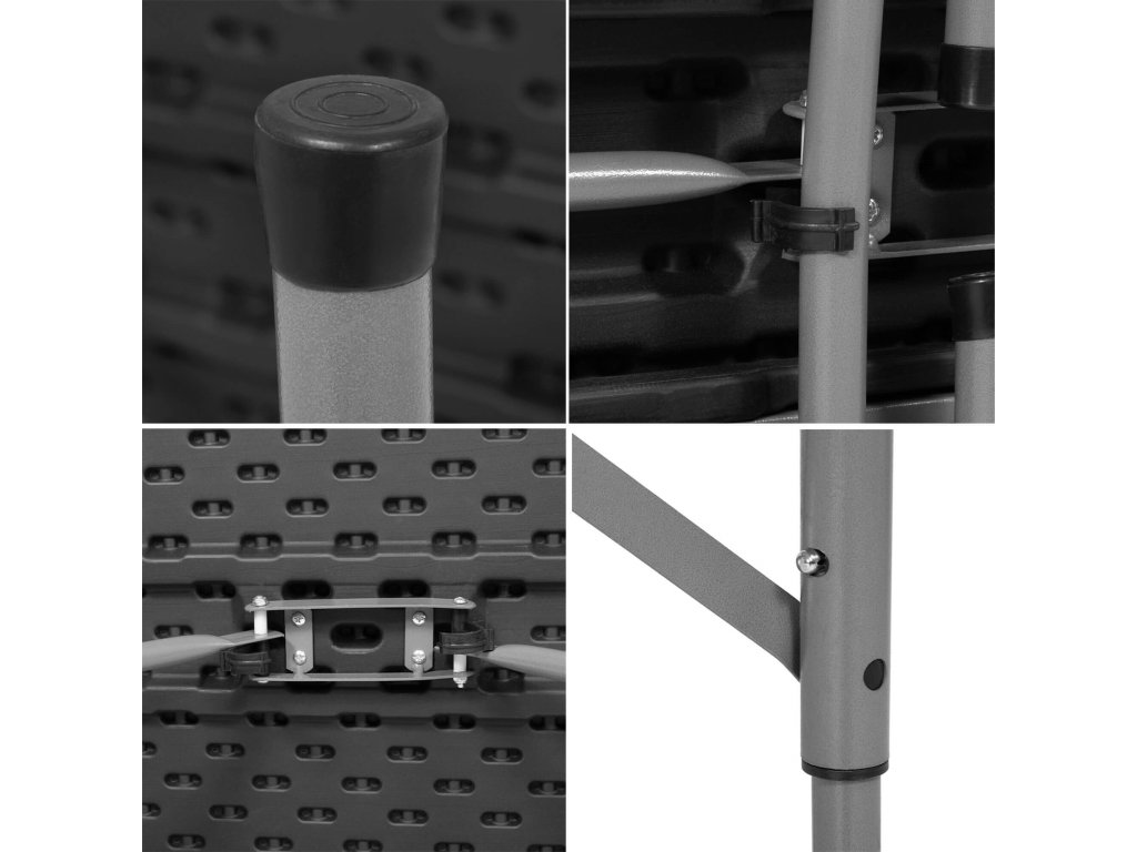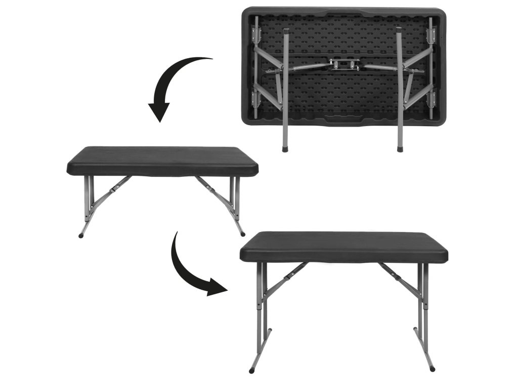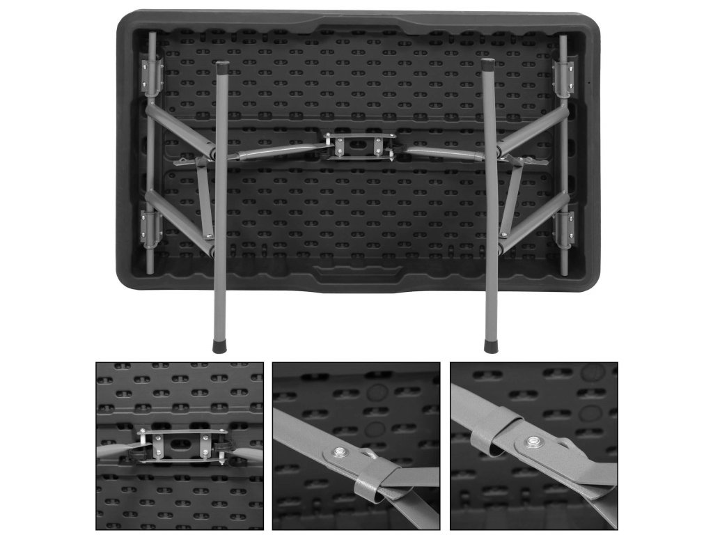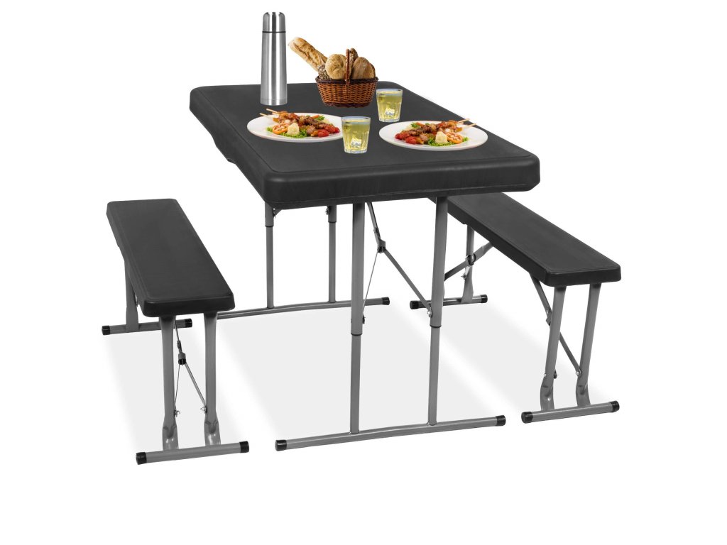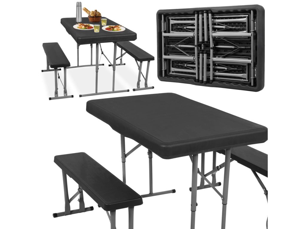 - Băncile pliate sunt complet ascunse în interiorul mesei pliate, astfel încât dimensiunile setului pliat sunt aceleași ca dimensiunile mesei pliate