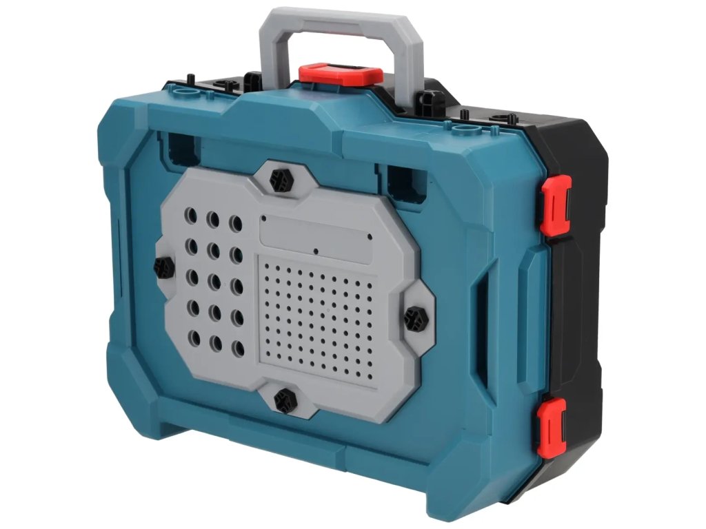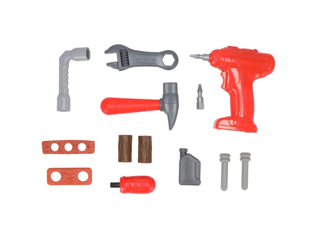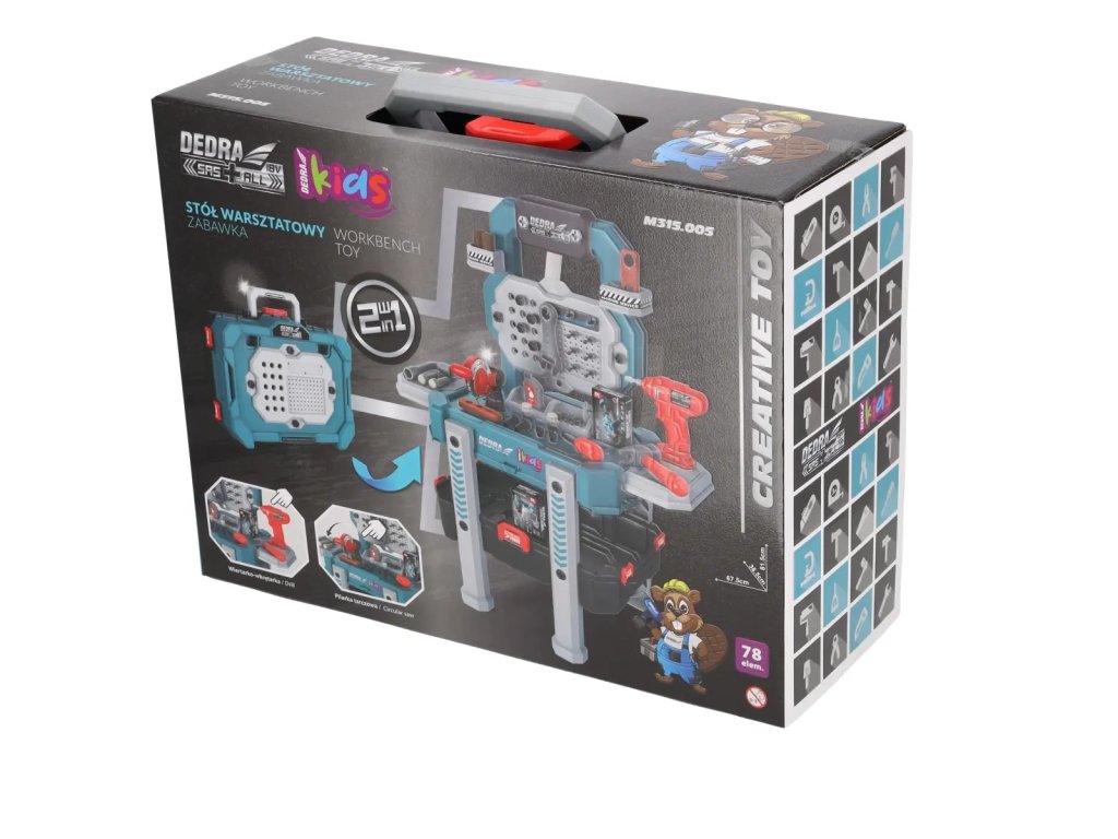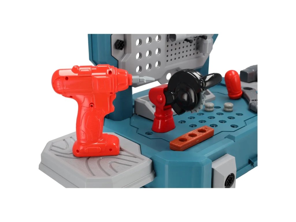 În set, pe lângă masa de lucru, se află o mică feronerie circulară și un ciocan electric, precum și o întreagă gamă de accesorii pentru acestea. Pentru a diversifica și mai mult joaca, la masă s-au adăugat accesorii precum chei, ciocan sau șuruburi și șuruburi autofiletante – astfel, orice copil se va putea simți ca un adevărat meșteșugar.
