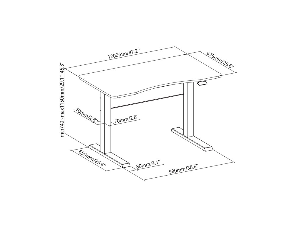 Interval de reglare a înălțimii părții superioare: 740 - 1150 mm