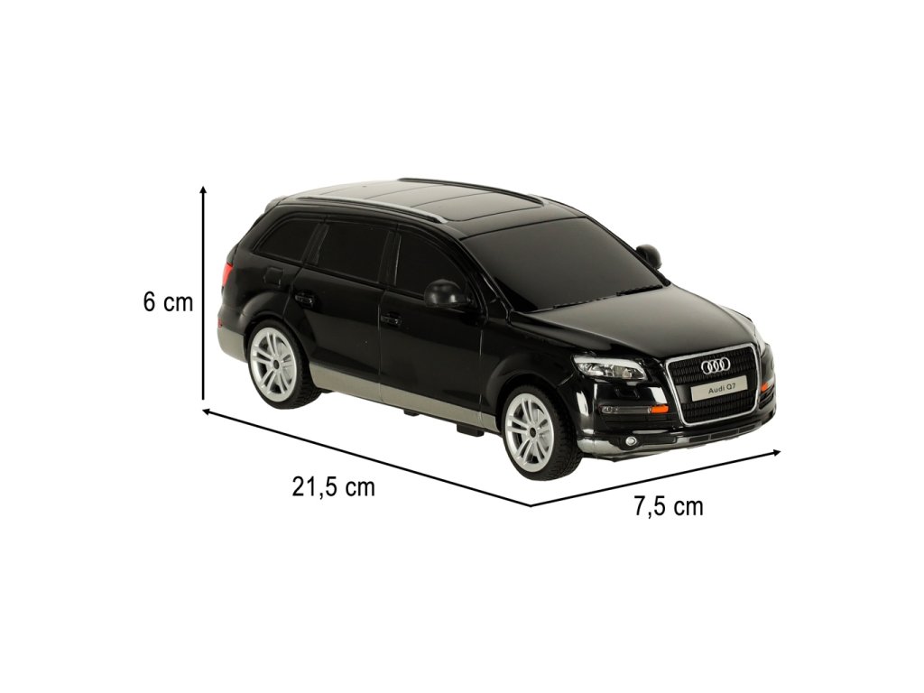 Audi Q7 auto na diaľkové ovládanie je zmenšenina skutočného Audi v mierke 1:24, ktorá verne reprodukuje detaily, ako je charakteristické logo značky, svetlomety a precízne navrhnutá silueta vozidla. Vďaka starostlivému spracovaniu model vyzerá ako skutočné luxusné SUV.