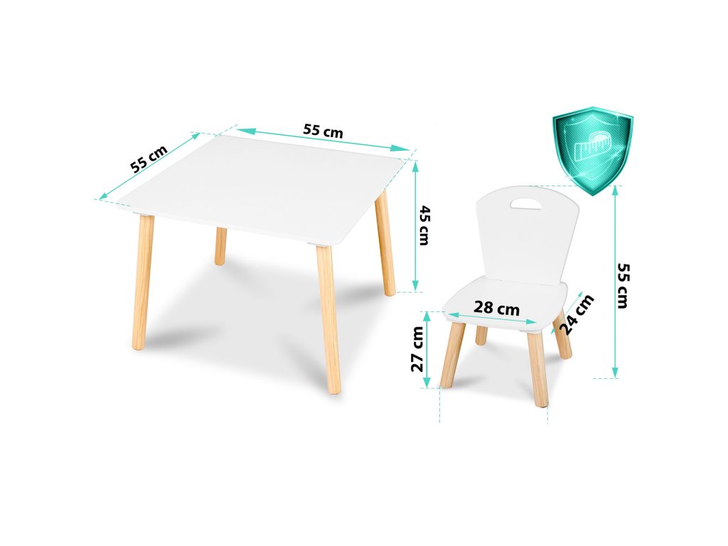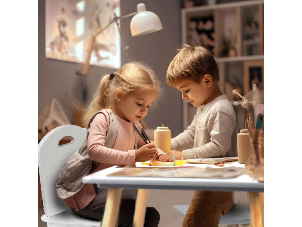 confortabile pentru copil și îi vor servi timp îndelungat. Cele două scaune fac ca masa să fie ideală pentru frați – se potrivește de asemenea când copilul are un oaspete.