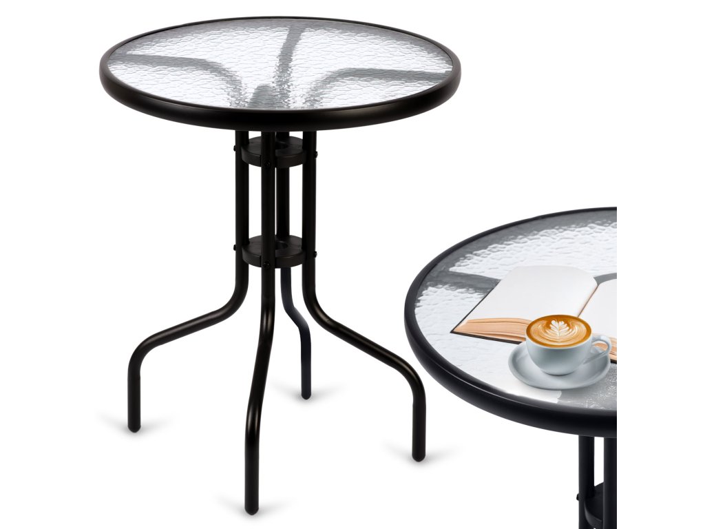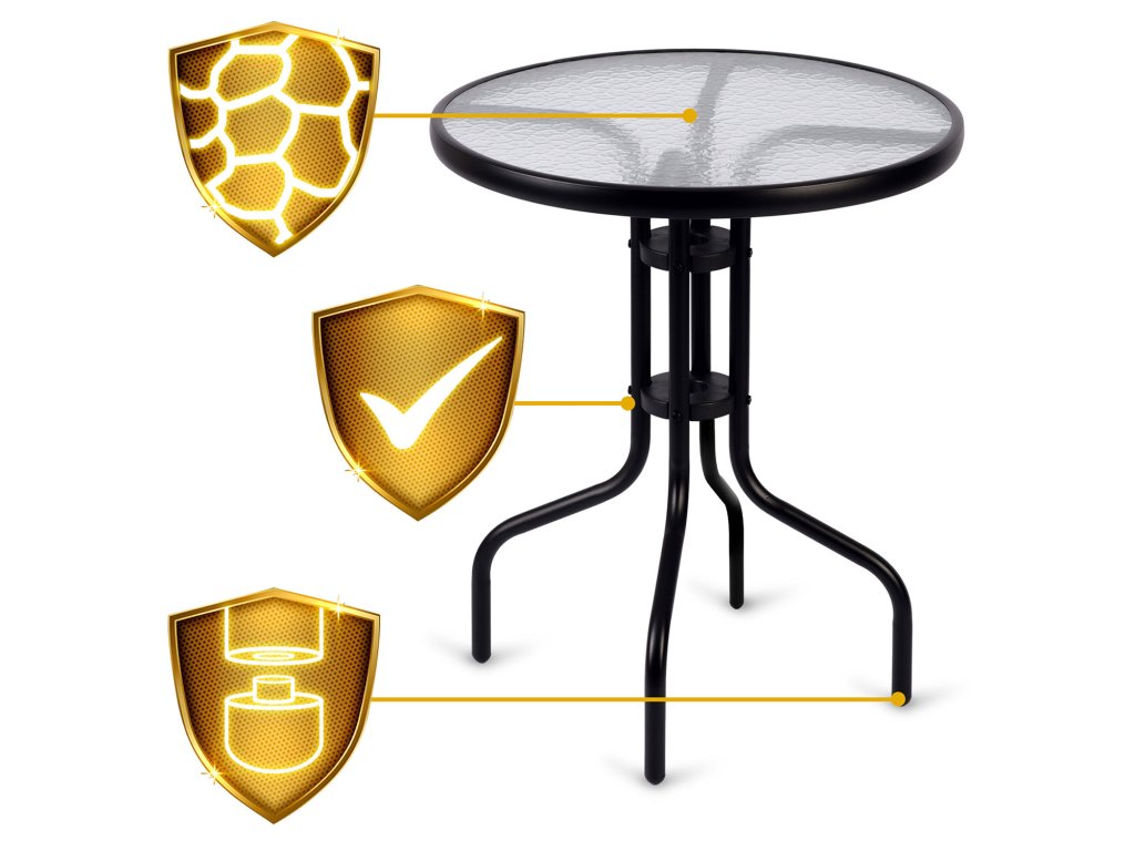 Durabilitate și rezistență la condițiile meteorologice — blat de masă realizat din sticlă securizată, iar construcția din oțel inoxidabil garantează rezistența la ploaie, radiații UV și schimbări de temperatură.