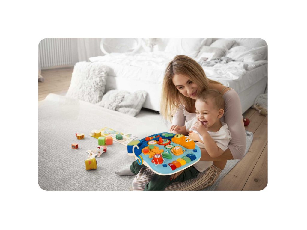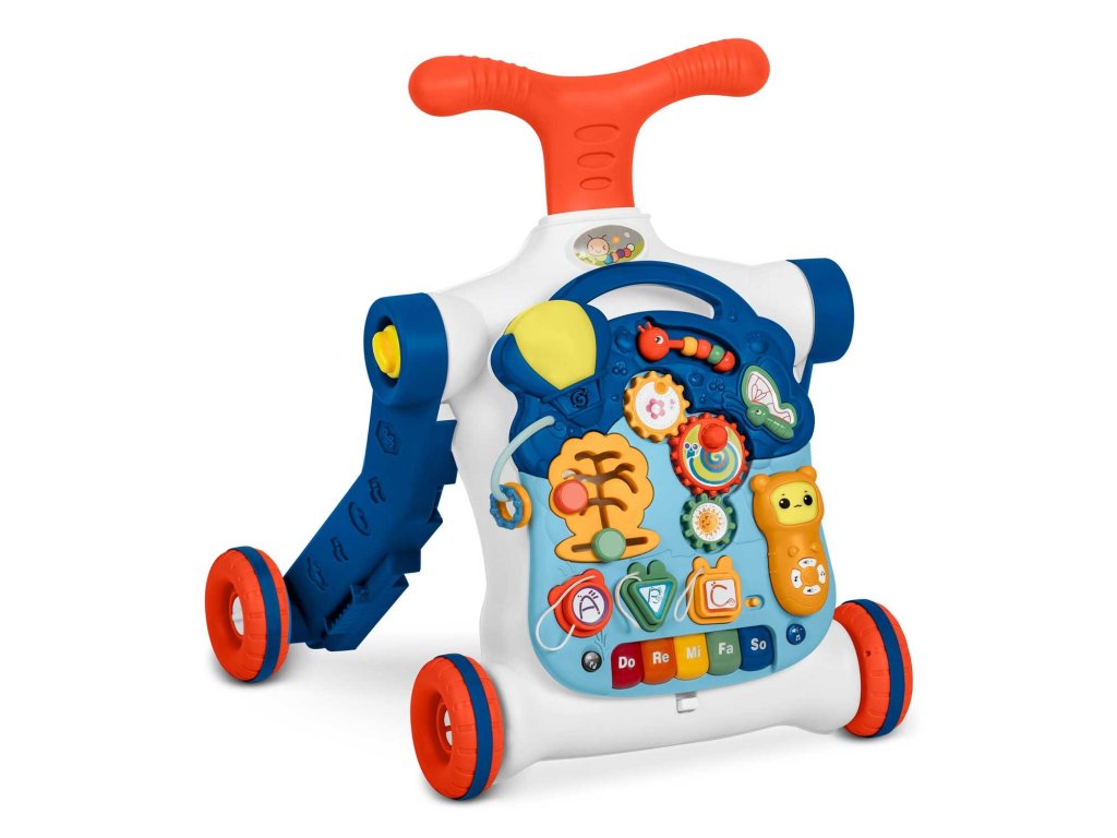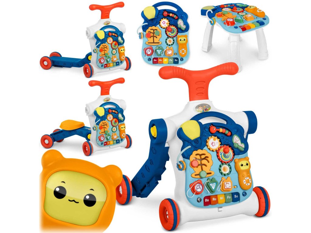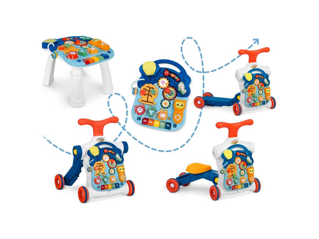 În afară de învățarea mersului, produsul este ideal pentru învățarea numerelor, culorilor și formelor. Panoul detașabil (pentru a detașa panoul, apăsați butonul din partea de jos a structurii pentru a elibera zăvorul) poate fi utilizat ca tablă de învățare, iar după adăugarea picioarelor se transformă rapid într-o masă de învățare.