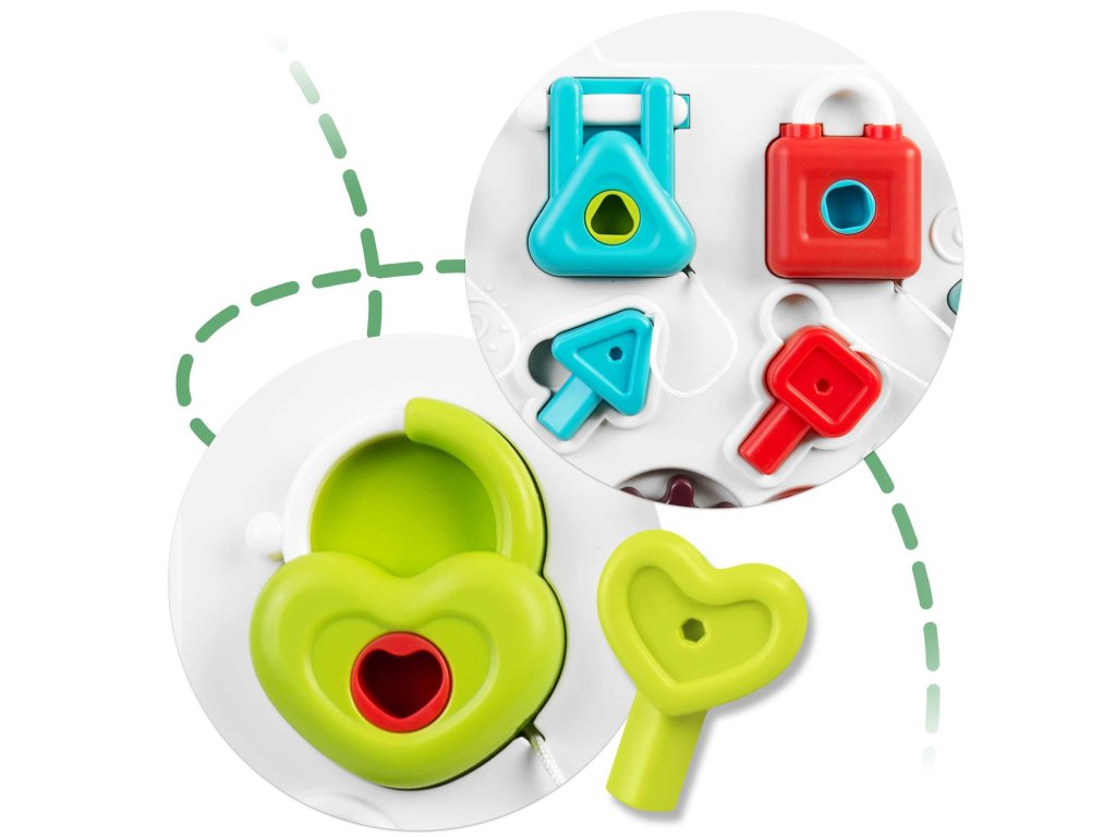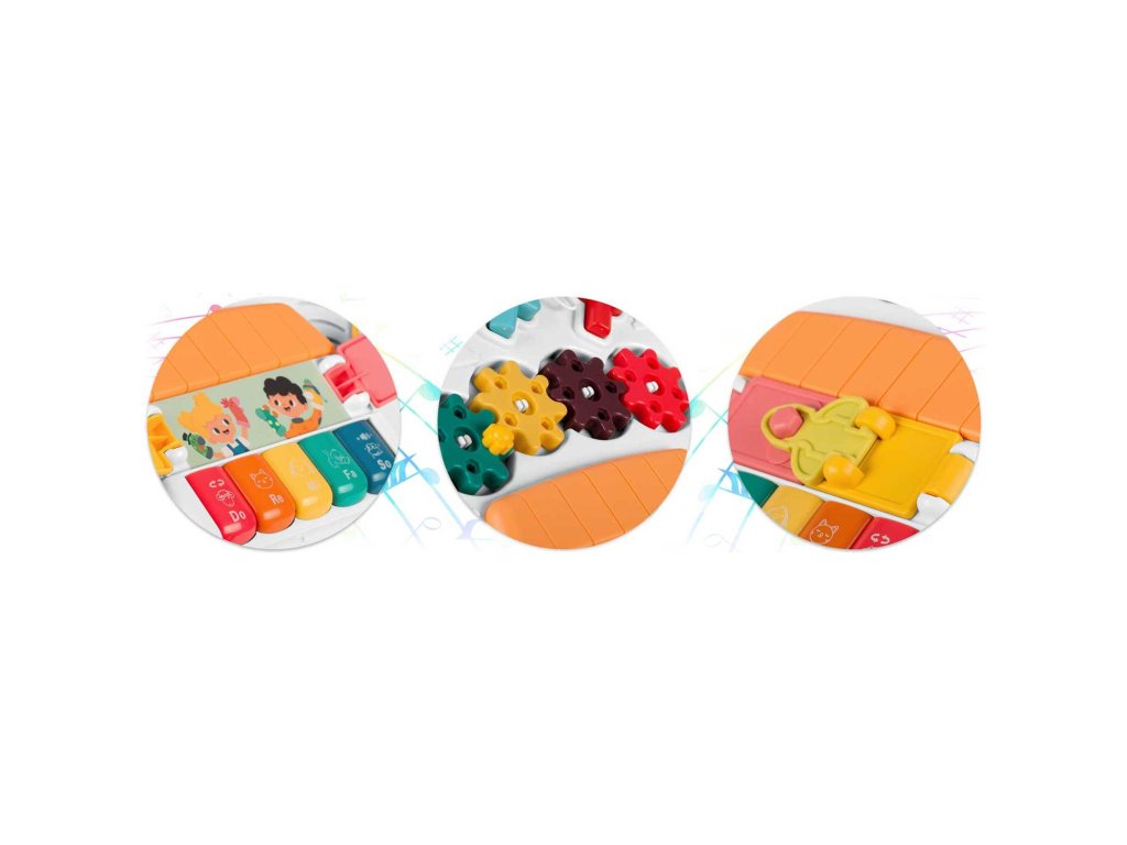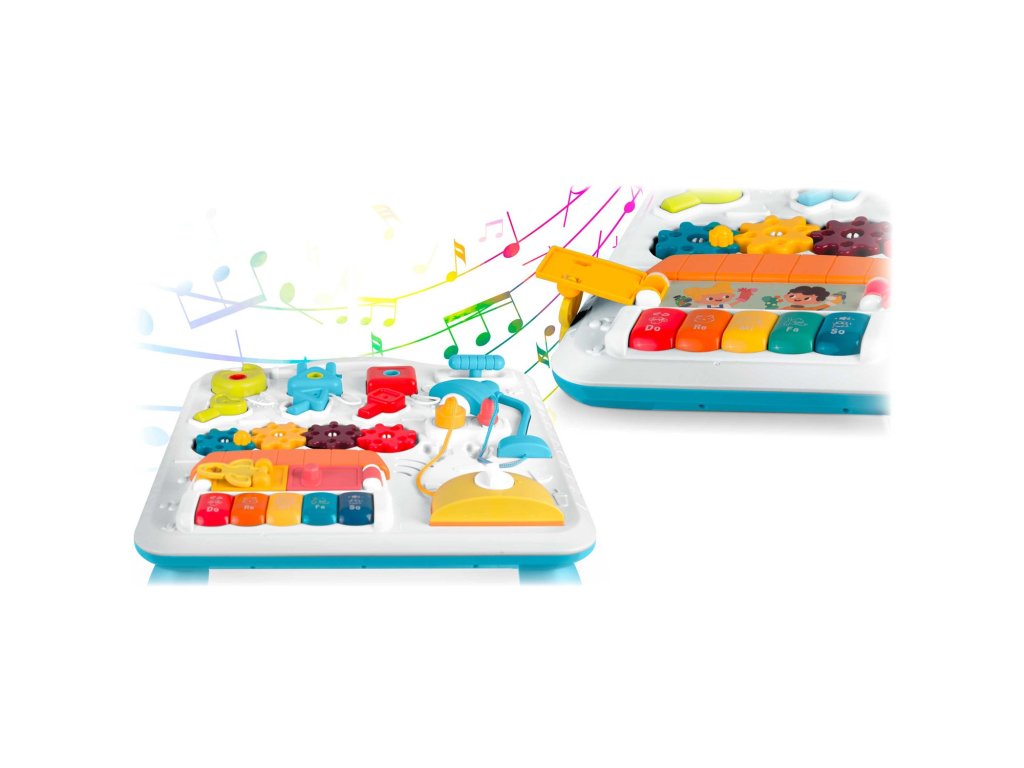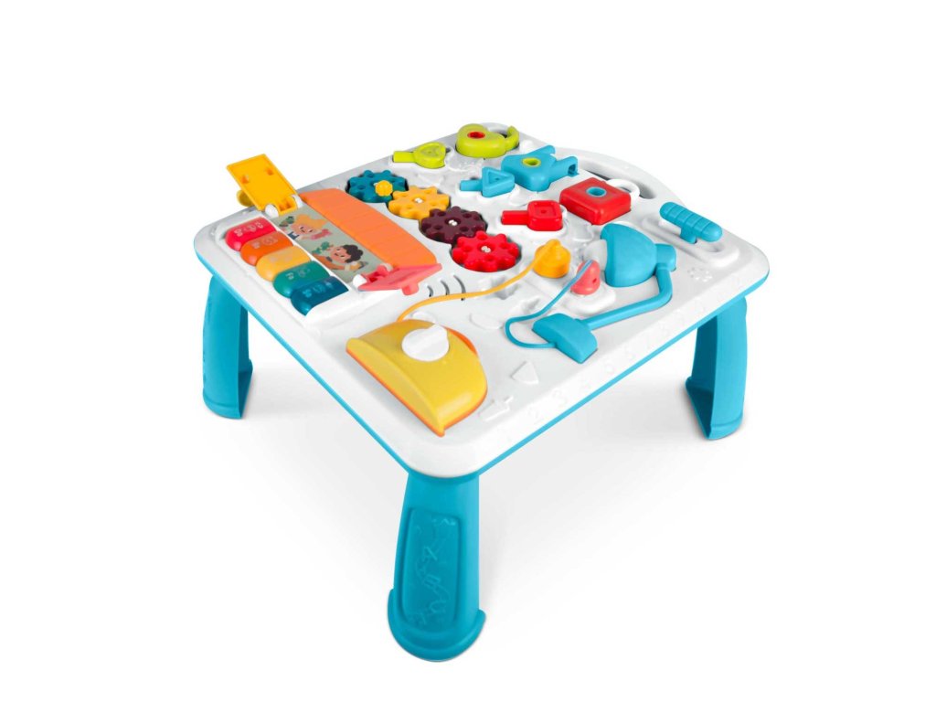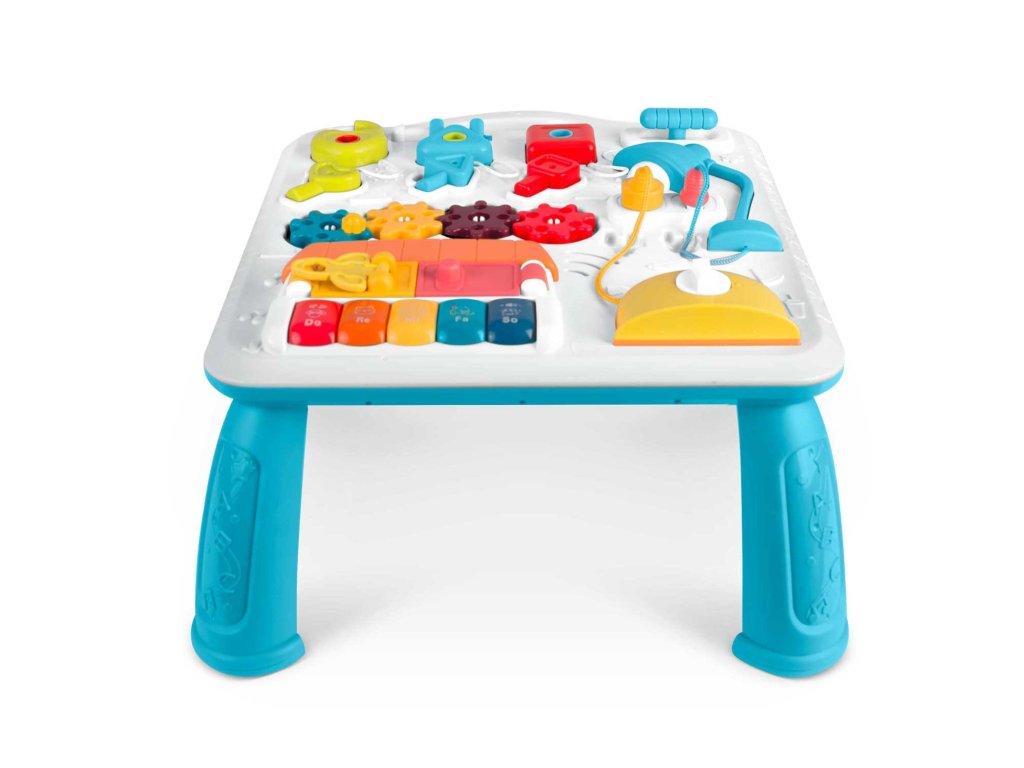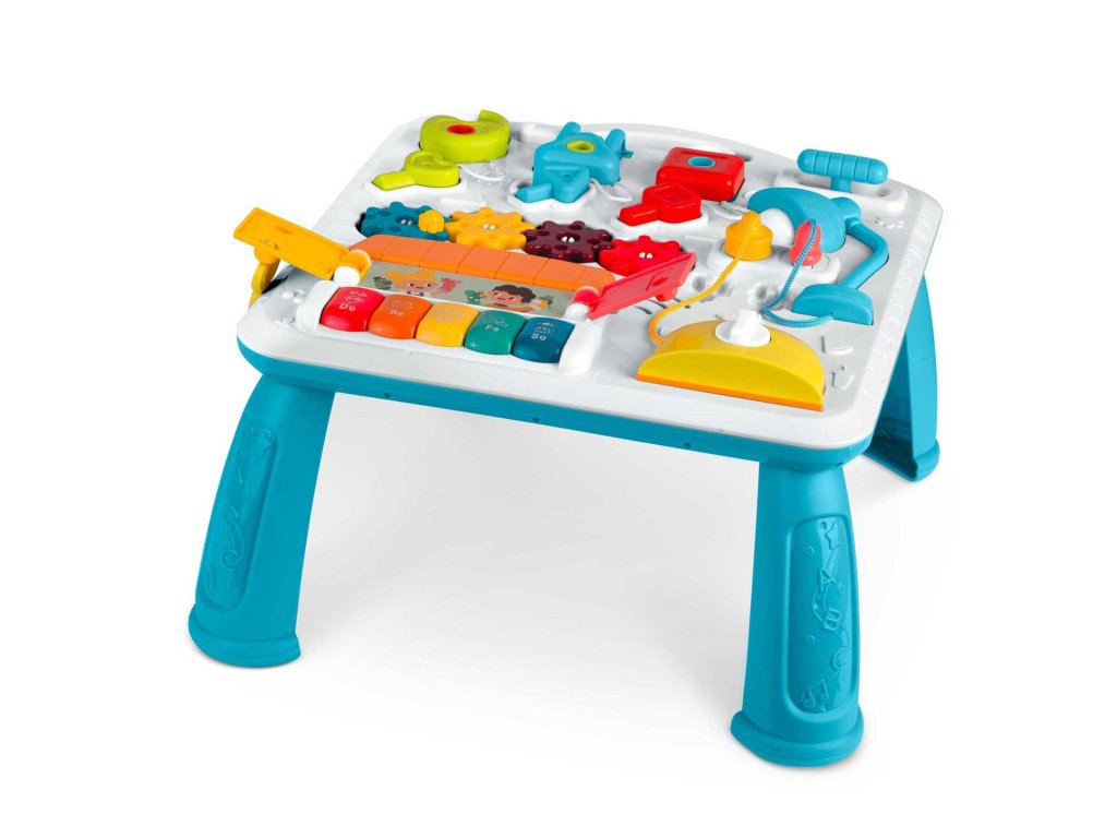 Masuța are o mulțime de elemente , care permit îmbunătățirea abilităților manuale ale copilului dumneavoastră . Pentru a dezvolta motricitatea fină, copilul poate roti, apăsa și efectua mișcări precise cu mâinile.