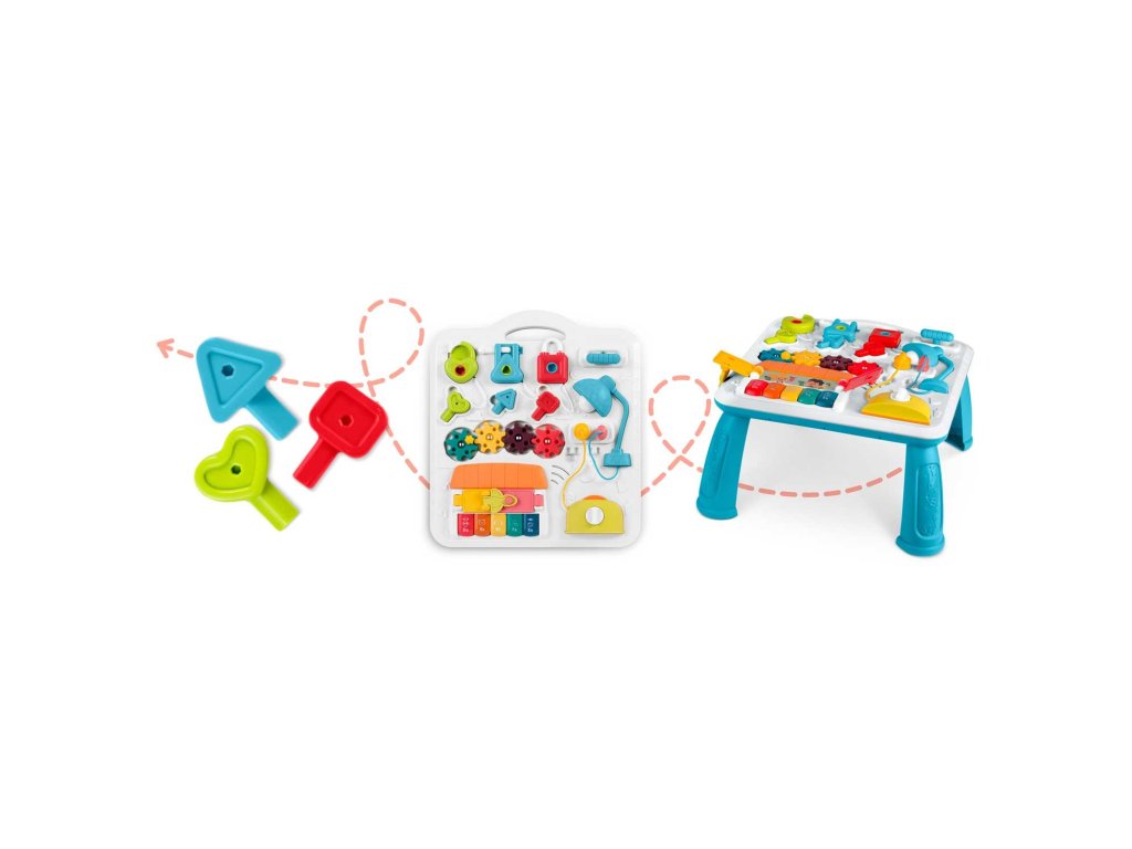 Produsul este ideal pentru învățarea numerelor, culorilor și formelor . Panoul detașabil poate fi utilizat ca o tablă educativă și, prin adăugarea de picioare, se transformă rapid într-o masă educativă.