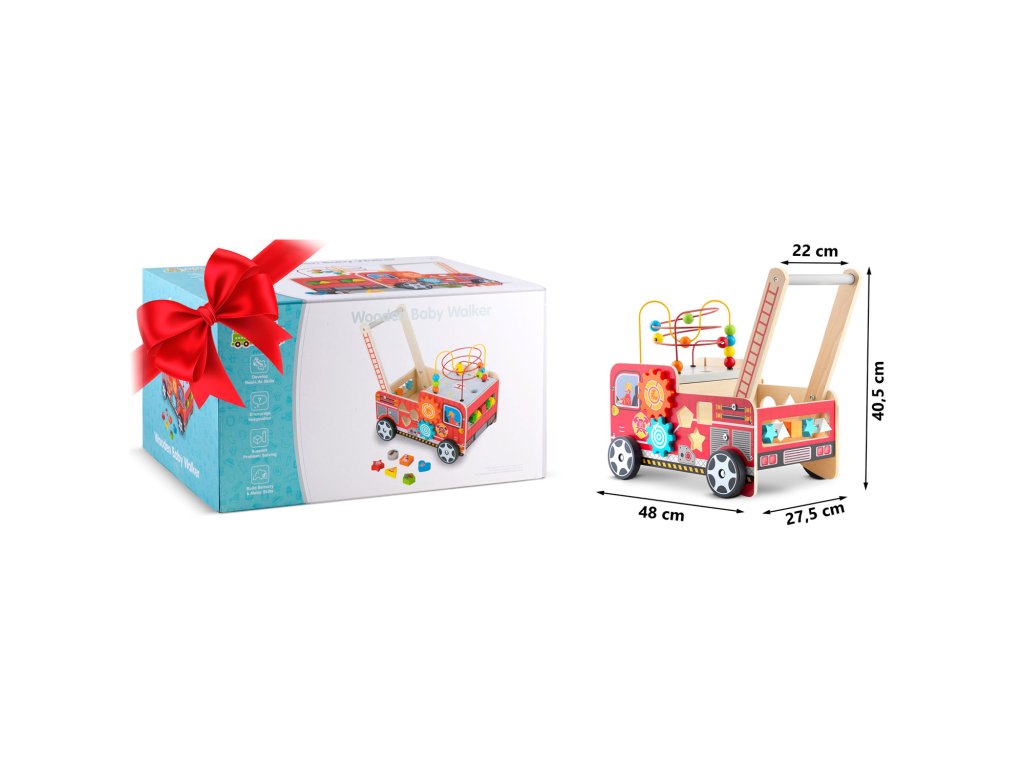Culorile intense stimulează vederea copilului, facilitează învățarea culorilor și sprijină dezvoltarea percepției vizuale. În plus, culorile sigure și lemnul durabil garantează că jucăria este sigură chiar și pentru cei mai mici utilizatori și va servi mulți ani.