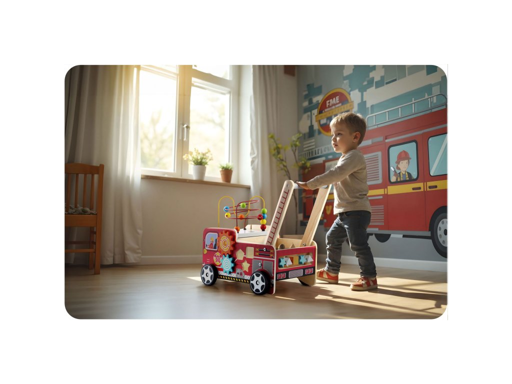 Premergător din lemn cu buton mașină de pompieri