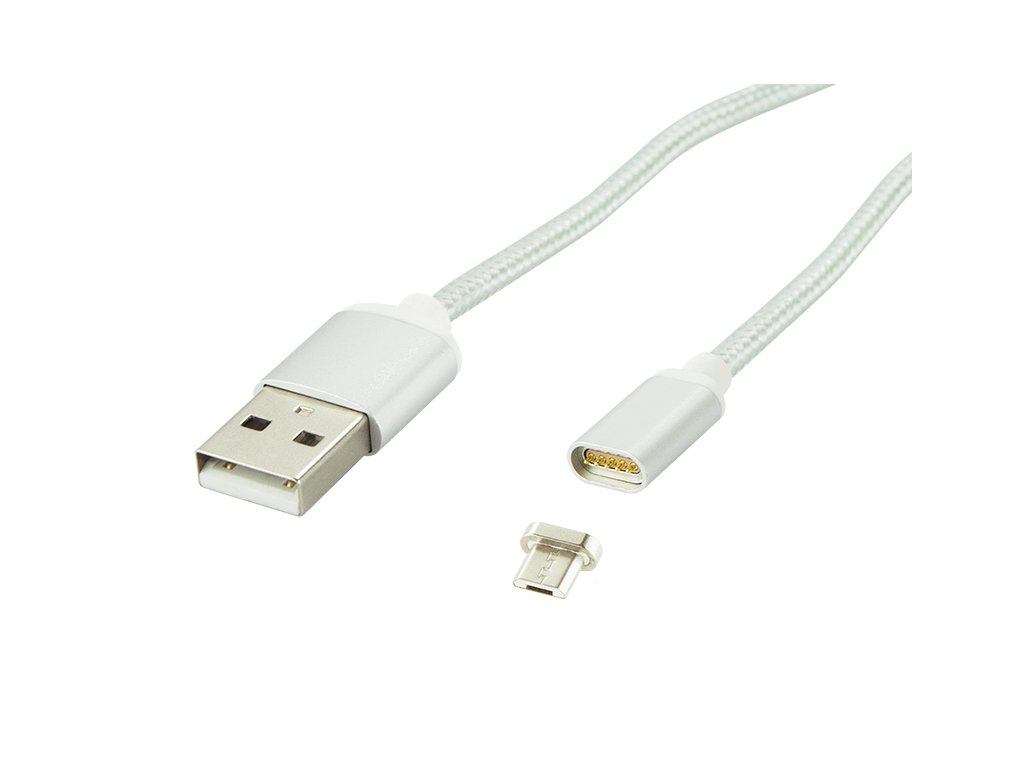 Micro USB B 1,0m magnet, argintiu, BL