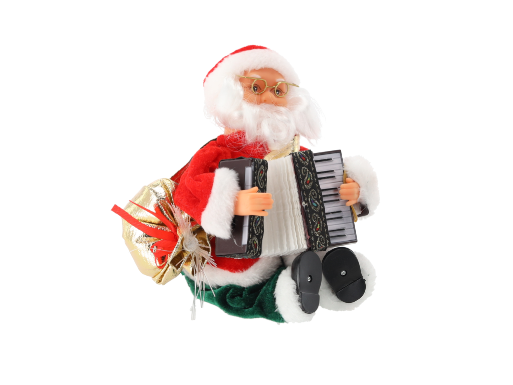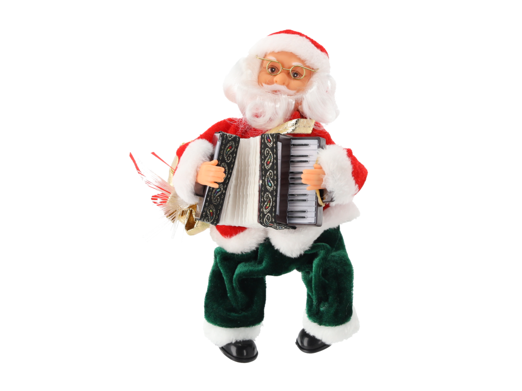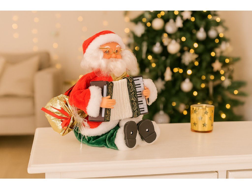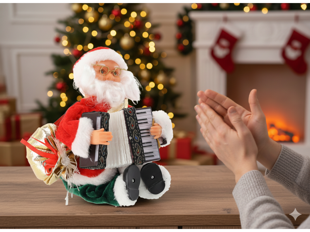MOȘ CRĂCIUN CU ACCORDION 25,5 CM - JUCĂUȘ ȘI CU LUMINĂ LED, CONTROLAT PRIN SUNET