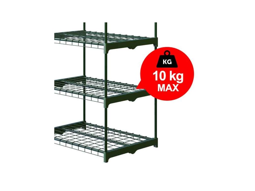 Spațiul de sub rafturi poate fi utilizat pentru accesorii – ghivece, greble etc.