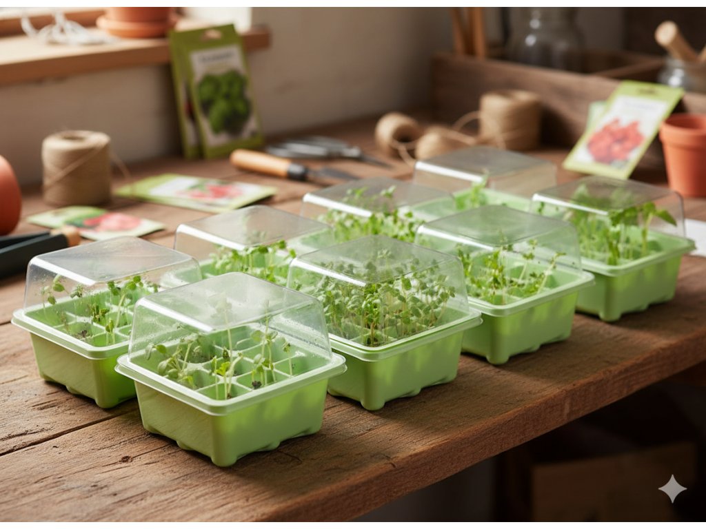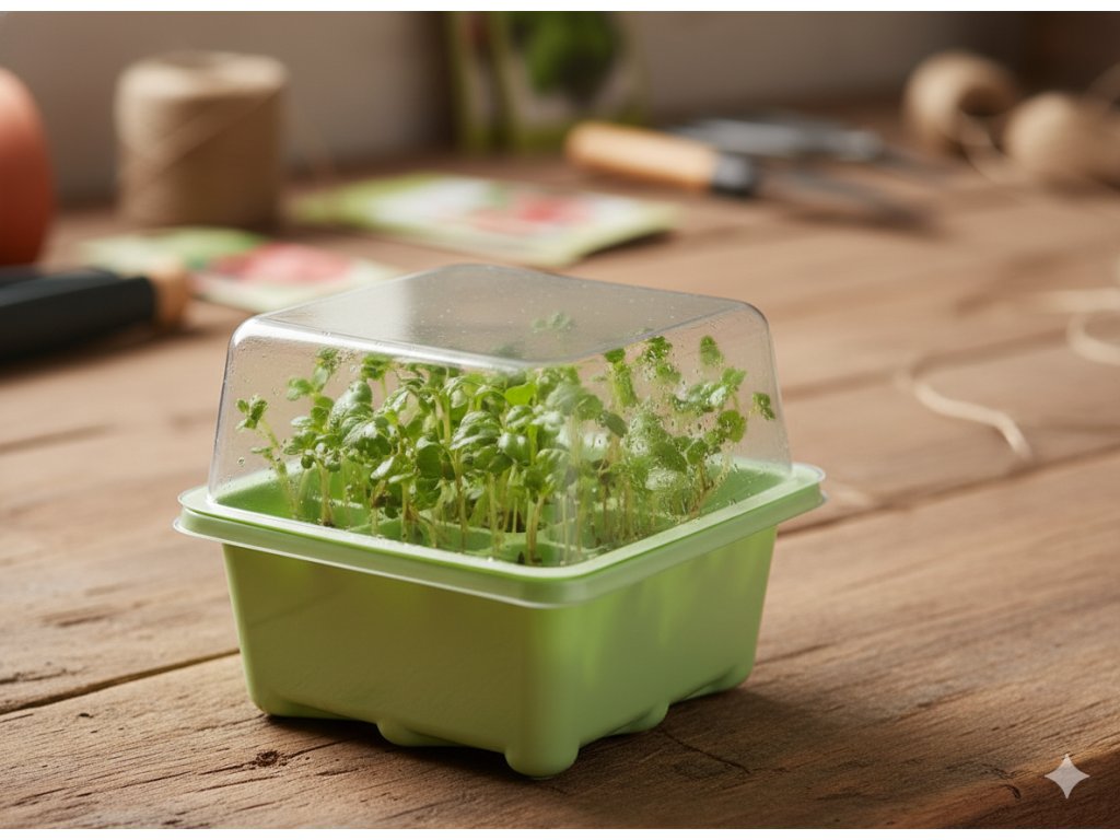Miniparstiernok creează condiții microclimatice optime pentru germinarea semințelor și înrădăcinarea butașilor erbacee în condiții de casă. În interior se menține o temperatură și o umiditate constantă. Se recomandă pentru cultivarea răsadurilor din semințe sau înrădăcinarea butașilor. Miniparstiernok conține 9 celule.Dimensiunile tavii: 12 x 12 x 7 CM