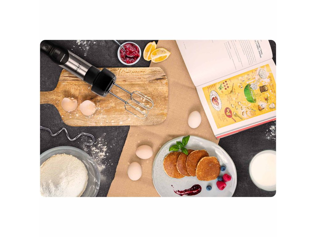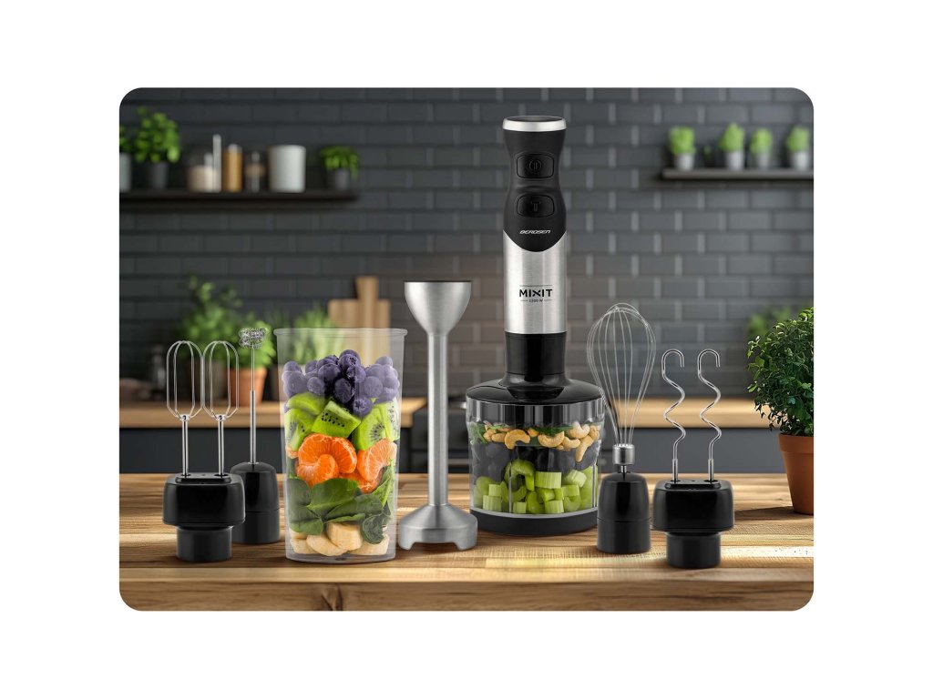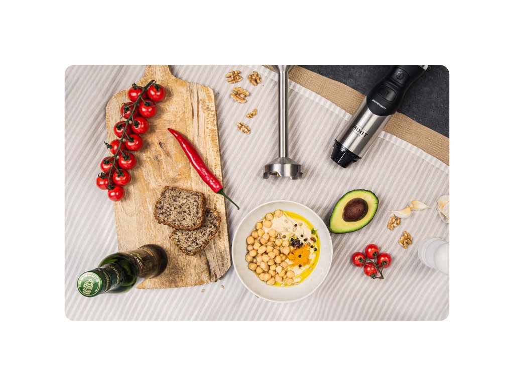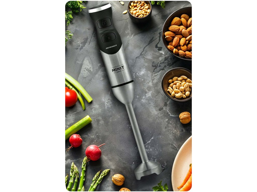 - Servește pentru amestecarea și zdrobirea ingredientelor într-o textură netedă. Ideal pentru prepararea supelor cremă, sosurilor, smoothie-urilor sau piureurilor de legume.