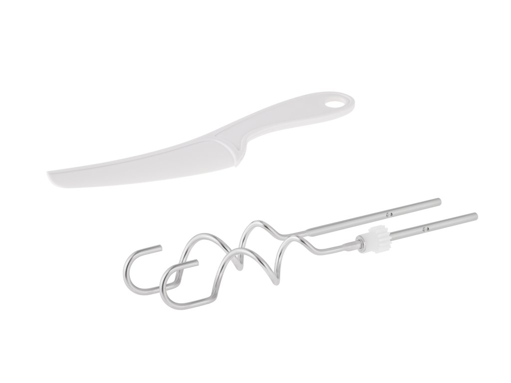 Setul include: bol, capac bol, bază, teluri, accesorii de amestecat, spatulă, manual de utilizare