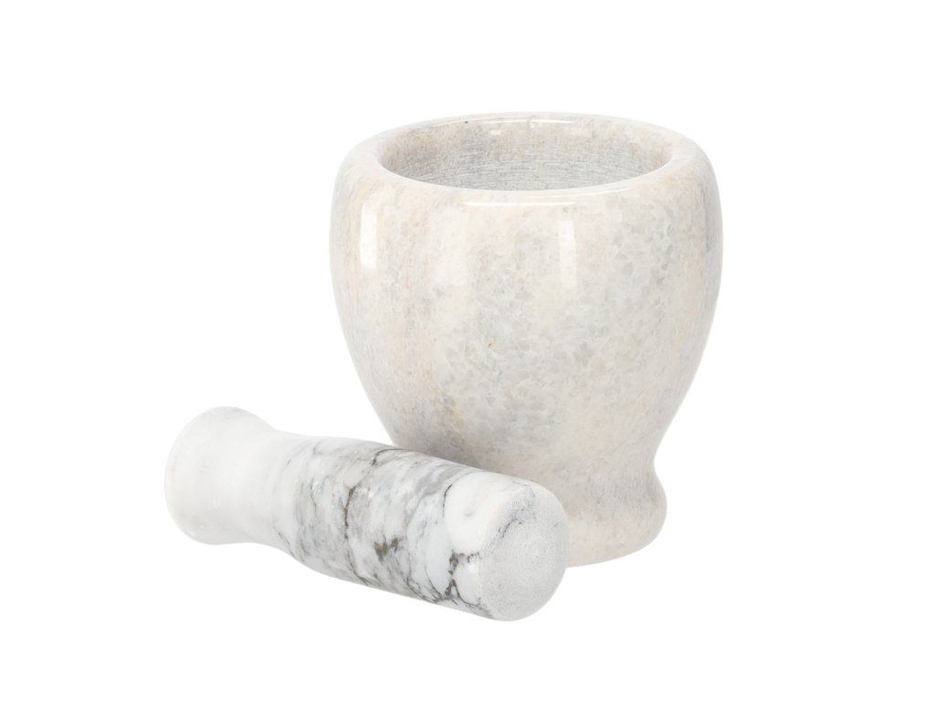 Mortar din marmură de înaltă calitate cu dimensiunile de 10x11 cm, de culoare gri. Ideal pentru zdrobirea manuală a ierburi și condimente, precum și a altor produse dure.Parametri suplimentari