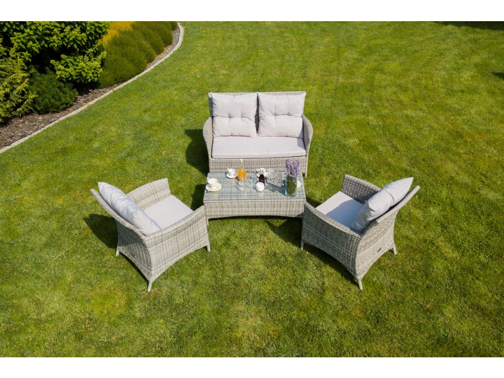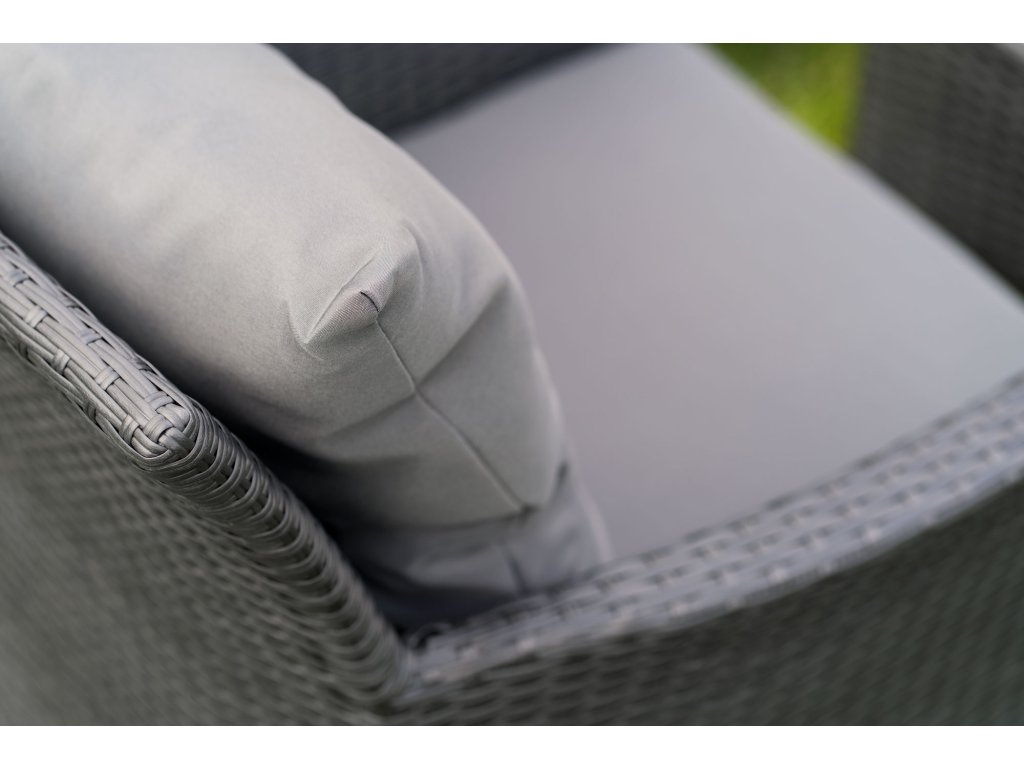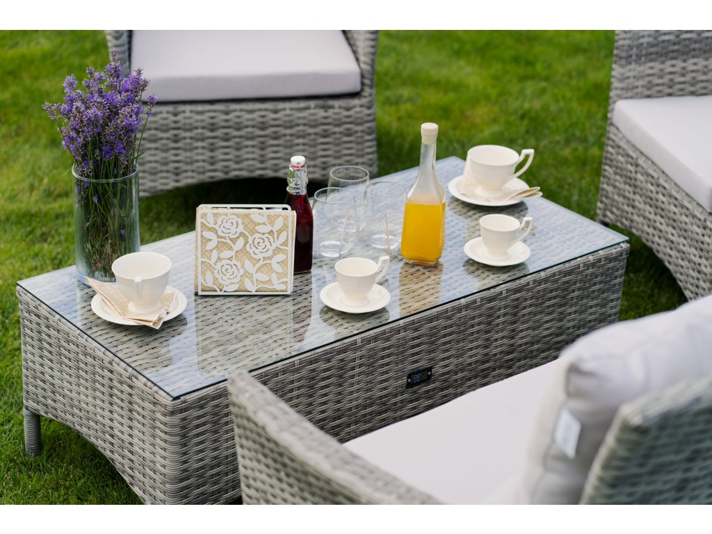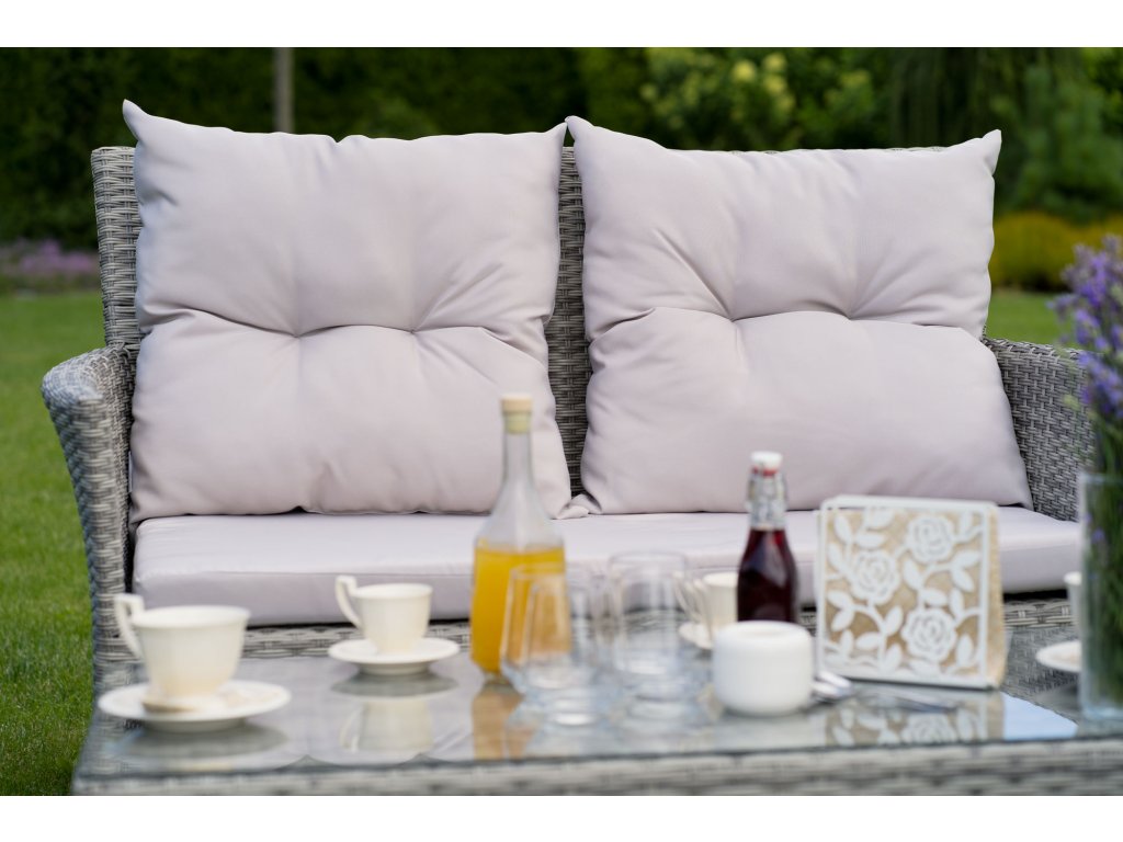 și confortul ridicat în utilizare. O soluție extrem de practică este utilizarea unei plăci din sticlă călită, datorită căreia puteți așeza fără grijă preparate fierbinți pe masa de grădină. Pernele moi pentru grădină, așezate pe fotolii și pe canapea, cresc cu siguranță confortul în timpul odihnei și relaxării de vară. Important este că, pe lângă pernele de pe scaune, în acest set veți găsi și perne pentru spătare. Setul de grădină Teesa Lily 1 a optat pentru un design clasic, astfel încât