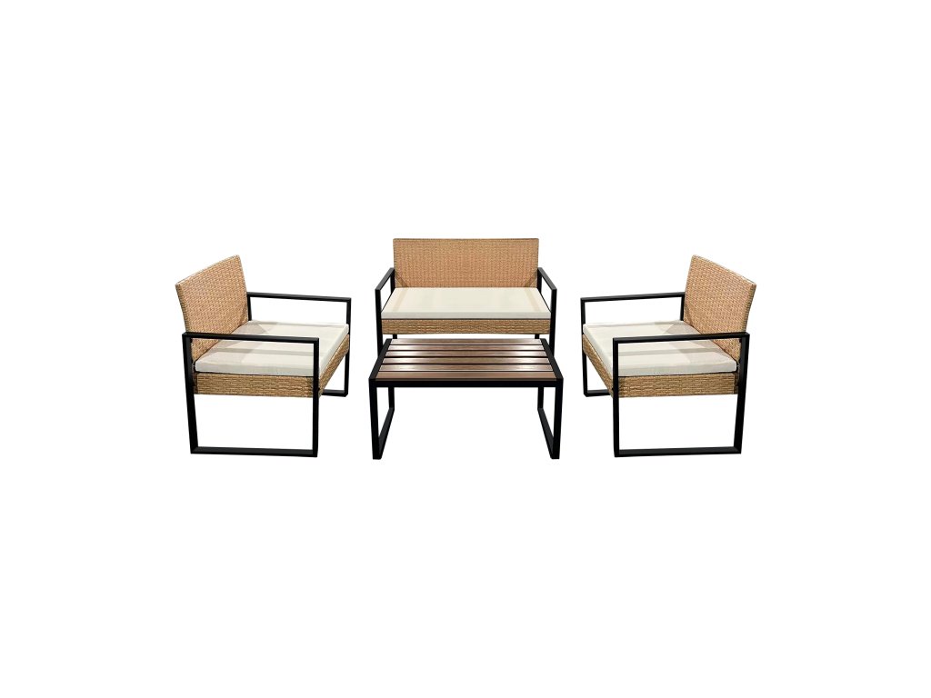 Setul include, pe lângă două fotolii și o canapea, o măsuță de cafea cu blat din plastic. Este un accesoriu ideal care vă permite să serviți confortabil băuturi și gustări în timpul întâlnirilor de vară în aer liber.
