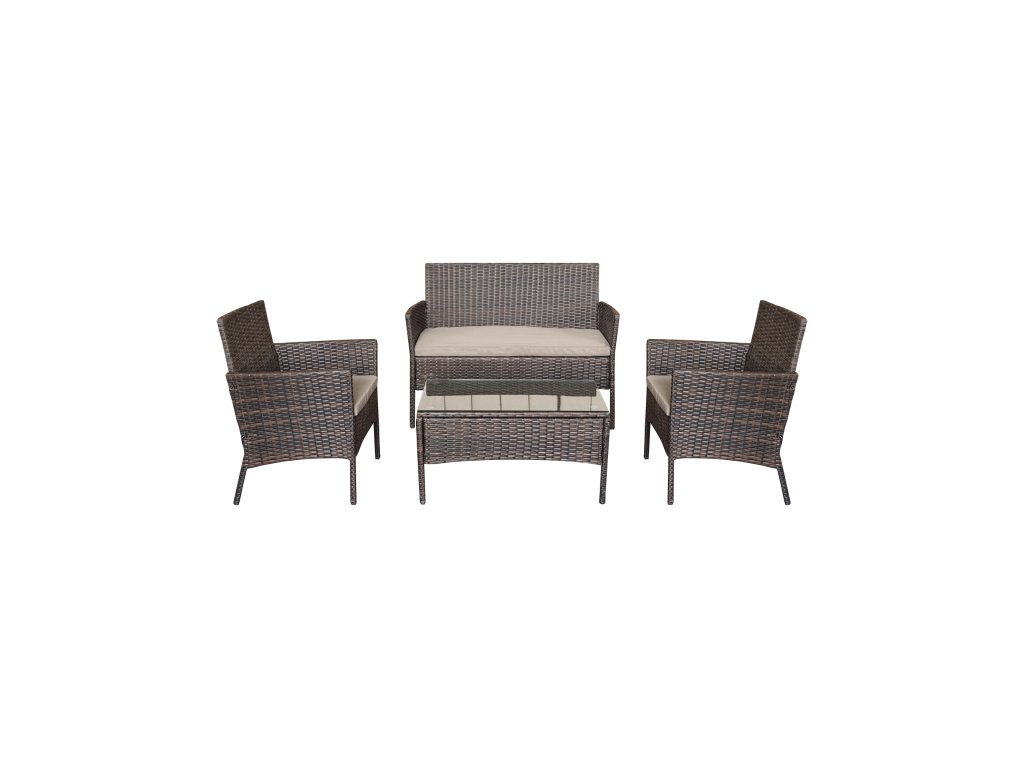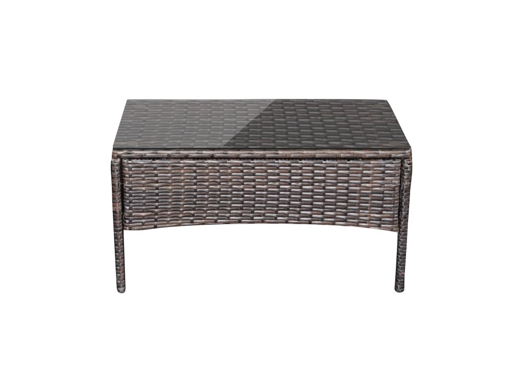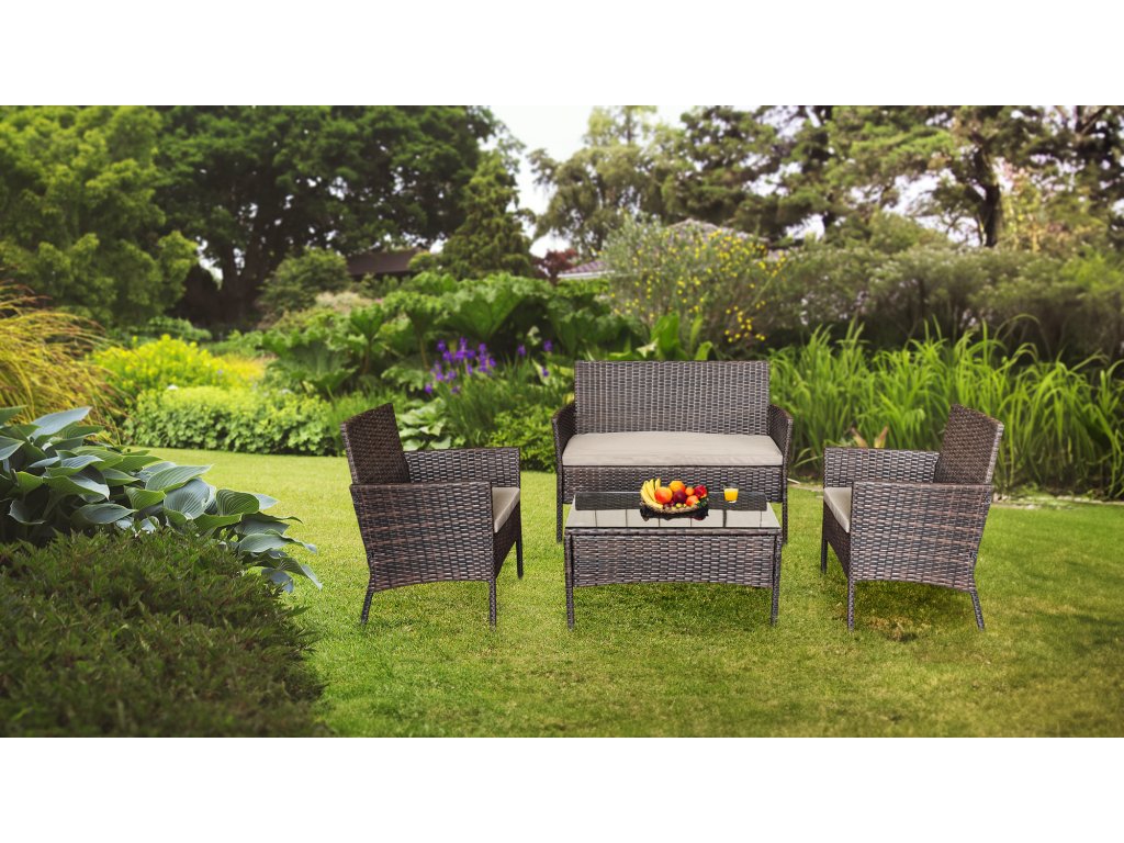 Setul de mobilier de grădină este completat de o masă din tehnoratan. Are o structură robustă și o suprafață suficient de mare pentru a plasa băuturi, gustări și decorațiuni. Îl puteți folosi liber pentru o cafea cu o prietenă sau pentru ceaiul de după-amiază în familie.