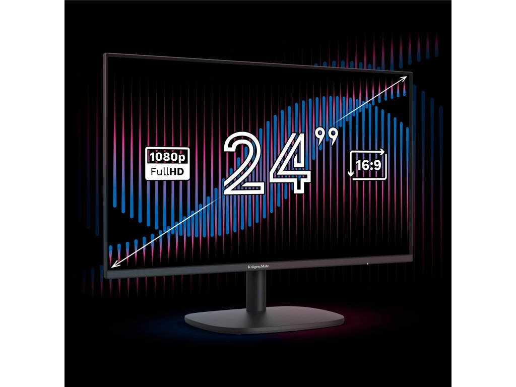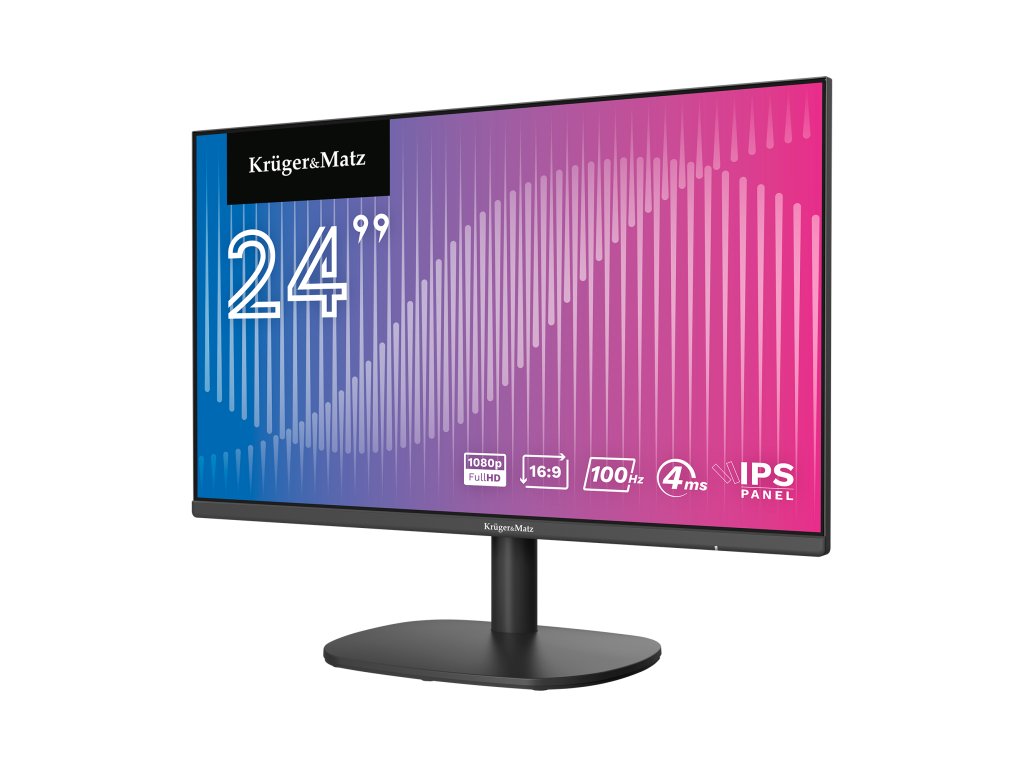 Monitorul Kruger&Matz este echipat cu un ecran de 24 de inci cu rezoluție Full HD, care oferă o imagine perfectă, indiferent dacă te joci, vizionezi un film sau lucrezi.Folosirea cadrelor subțiri în jurul ecranului îmbunătățește suplimentar zona de vizualizare, permițându-vă să vă concentrați pe ce este mai important.