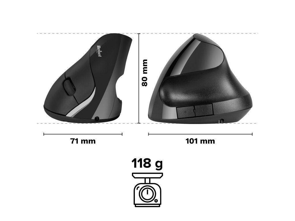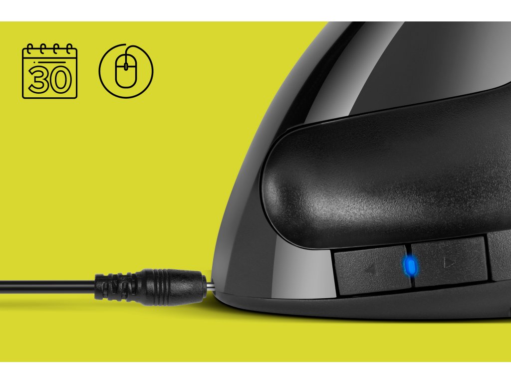 Ai nevoie de o precizie ridicată la muncă zilnică Pentru o utilizare mai ușoară, mouse-ul vertical wireless Rebel este echipat cu cinci butoane și oferă posibilitatea de schimbare rapidă a sensibilității. Poți să-l setezi în intervalul 800/1200/1600 DPI. Datorită bateriei integrate, mouse-ul vertical îți permite să lucrezi până la 30 de zile, iar când observi o scădere de energie, îl poți reîncărca ușor cu ajutorul cablului USB inclus.