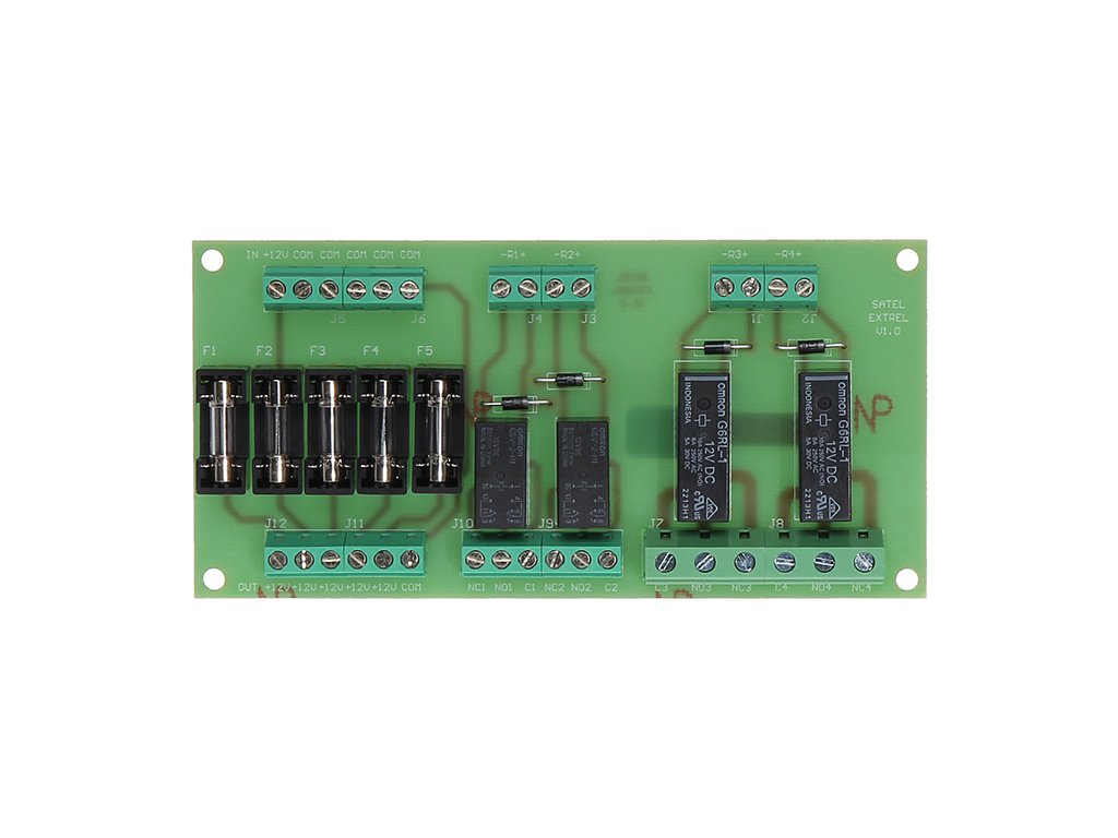 Modulul de relee este un dispozitiv universal destinat utilizării în instalații cu tensiune redusă, în principal în sisteme de alarmă. Funcția de control este realizată prin semnale de tensiune trimise la intrările de control, care determină comutarea contactelor releului și pot fi închise sau deschise. MP-1 este echipat cu 4 relee electromagnetice controlate de tensiune de 12 V CC și 5 siguranțe conectate în serie în circuitele de ieșire a tensiunii, care îndeplinesc funcția de protecție împotriva suprasarcinilor dispozitivelor conectate. Dispozitivul permite realizarea funcției de control al dispozitivelor electrice cu un consum mare de curent (releul R1 și R2 până la 4 A; R3 și R4 până la 8 A) și alimentate cu curent continuu și alternativ (releul R1 și R2 până la 48 V AC/DC; R3 și R4 până la 400 V AC / 250 V DC).