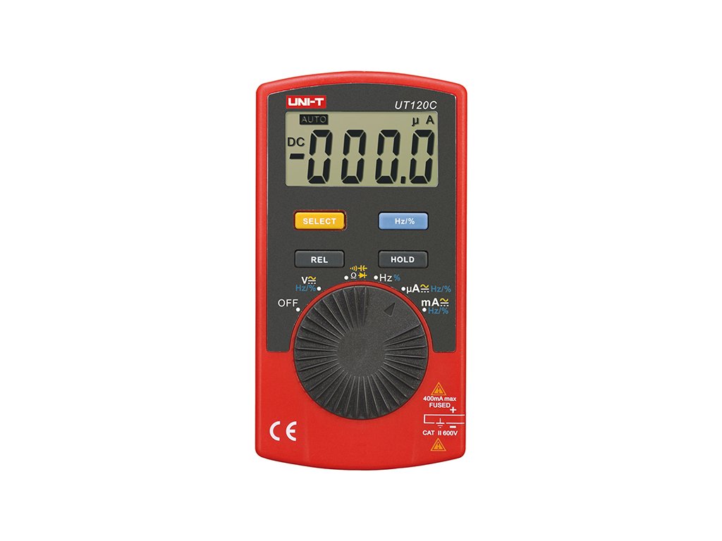 Micrometrul de buzunar UT120C va fi ideal nu numai în mâinile profesioniștilor , ci și în mâinile meseriașilor începători.Specificații: - tensiune continuă: 400 mV/4 V/40 V/600 V; ±(0,8%+1)- tensiune alternativă: 4 V/40 V/400 V/600 V; ±(1,2%+3)- curent continuu: 400 µA/4 mA/40 mA/400 mA; ±(1%+3)- Curent alternativ: 400 µA/4 mA/40 mA/400 mA; ±(1,5%+5)- Rezistență: 400 Ohm/4 kOhm/40 kOhm/400 kOhm/4 MOhm/40 MOhm; ±(1%+2)- Capacitate: 4 nF/40 nF/400 nF/4 µF/40 µF/100 µF; ±(4%+3)- Frecvență: 10 Hz-100 KHz; ±(0,5%+3)- Impedanța de intrare a tensiunii continue: aproximativ 10 MOhm- Oprire automată: Aproximativ 30 minute- Continuitate circuit: DA- Indicator baterie slabă: =<2,4 V- Indicație de memorare a ultimei valori: DA- Afișaj maxim: 4000- Alimentare: baterie 3 V (CR2032)- Dimensiune ecran: 43 x 22 mm- Dimensiuni produs: 110 x 58,2 x 10,8 mmGreutate produs 76 g