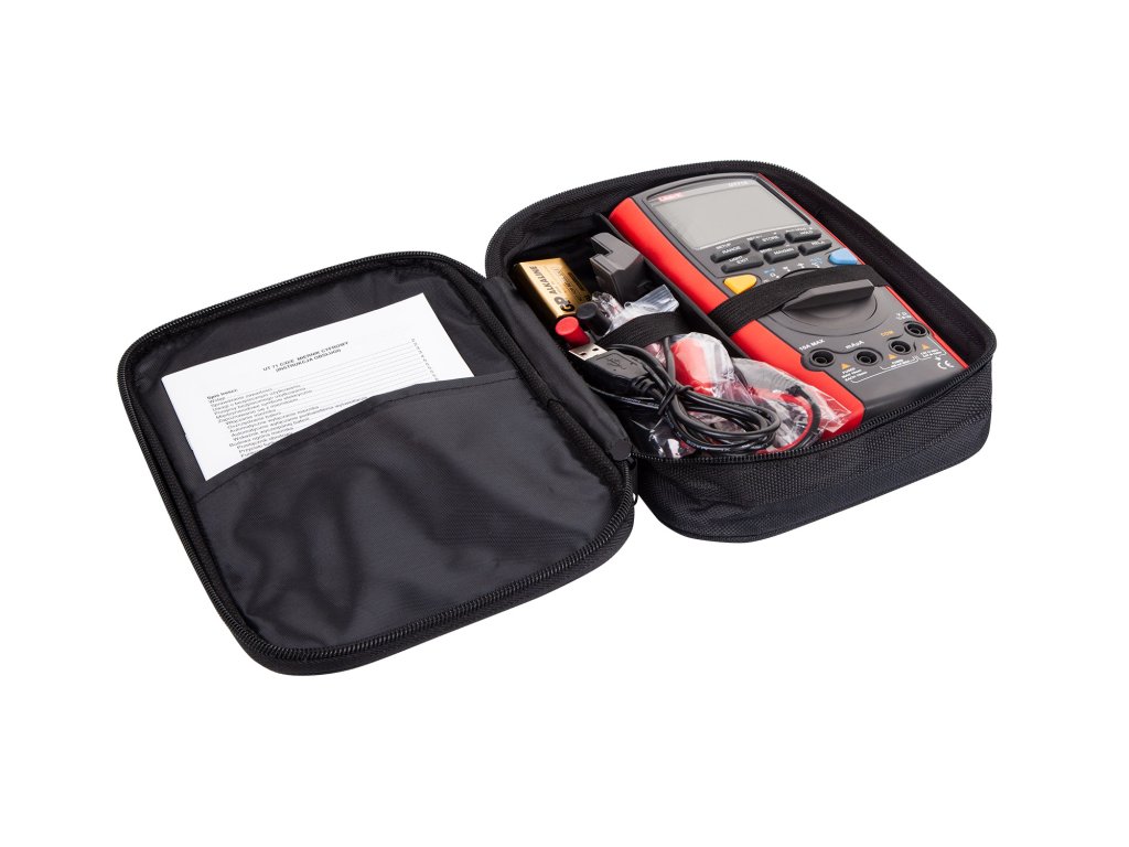 Accesorii: baterie, cabluri de măsurare, sondă de temperatură, adaptor pentru măsurarea puterii, cablu USB, carcasă de transport